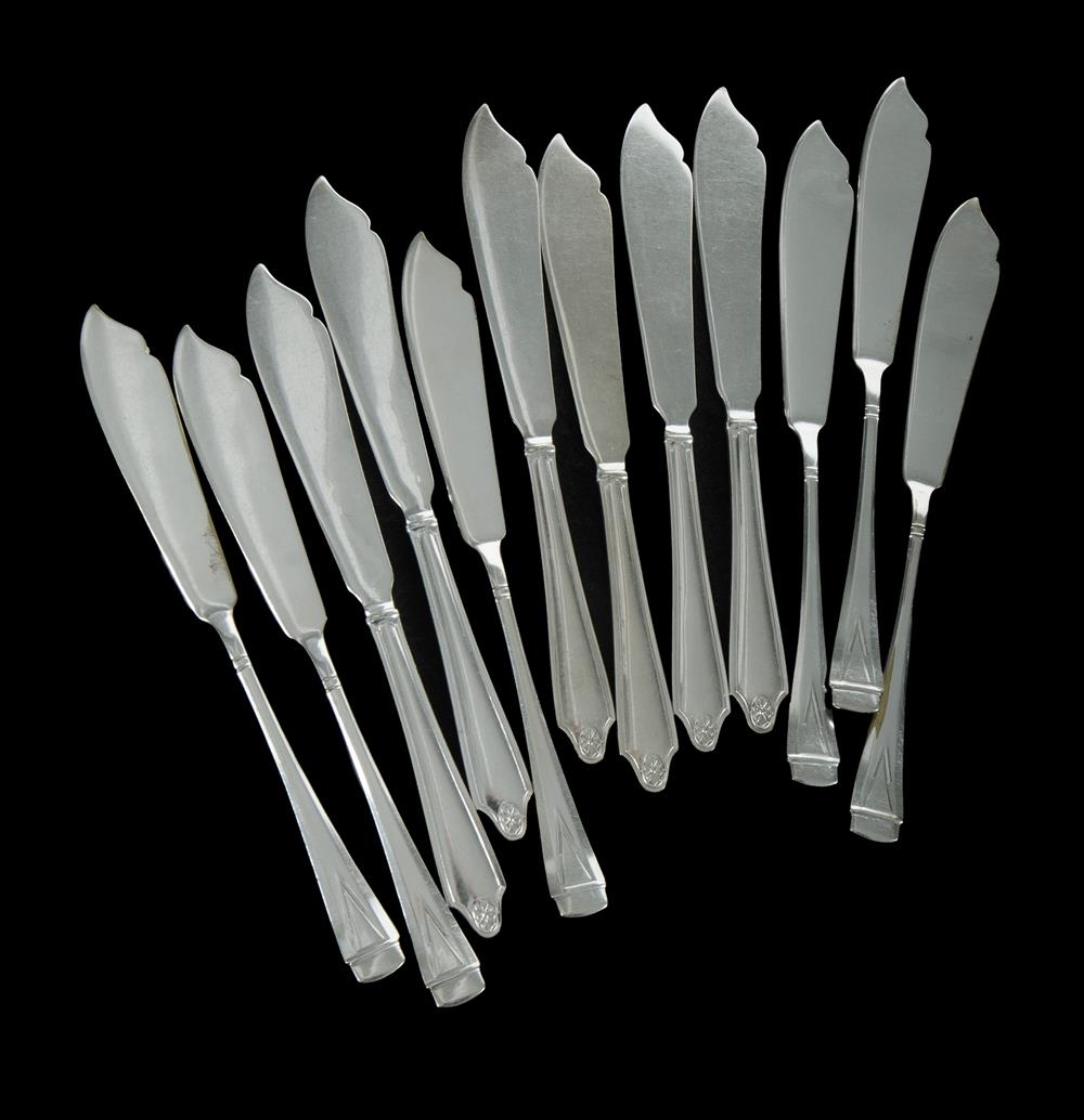Qty EPNS Cutlery. Ladle; salad servers, 9 dessert spoons; 2 fish cutlery sets; wine coaster; & bon-bon dish. Estimate $30-60