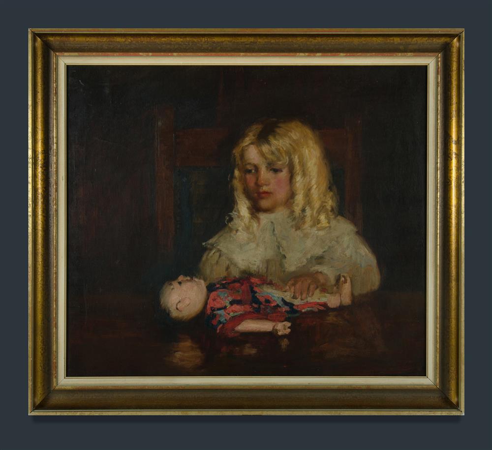 BARLOW, Elsie (1877-1948) Girl with Her Doll Provenance: Angeloro family collection. Oil on Canvas 64x74cm Estimate $800-1,500