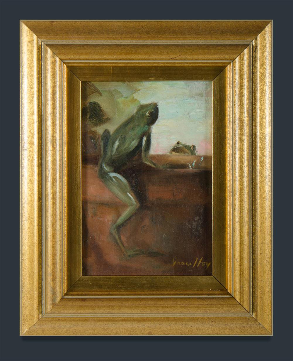 HOY, Grace (1875-1957) 'Frogs Rendezvous,' c1920. Provenance: Angeloro family collection. Literature: Illus. 'Heritage: The National Women's Art Book,' Sydney, 1995. Oil on Canvas 23x15cm Estimate $300-500