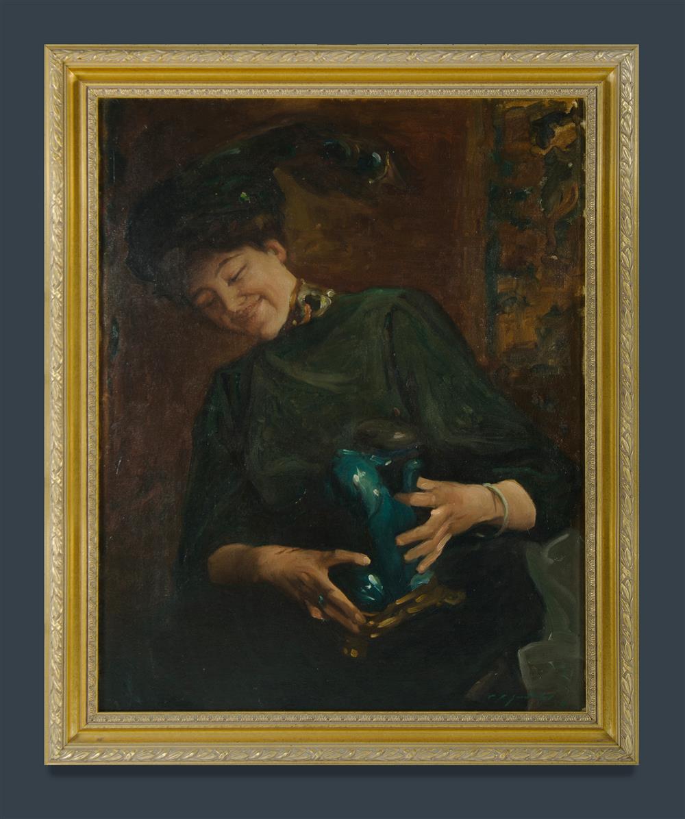JENKINS, Constance L 1883-1961) The Jade Dog, 1910 Provenance: Angeloro family collection. Literature: Heritage: The National Women's Art Book,' Sydney, 1995 pp. 18, 379 - 380. Oil on Canvas 91x72cm Estimate $4,000-7,000