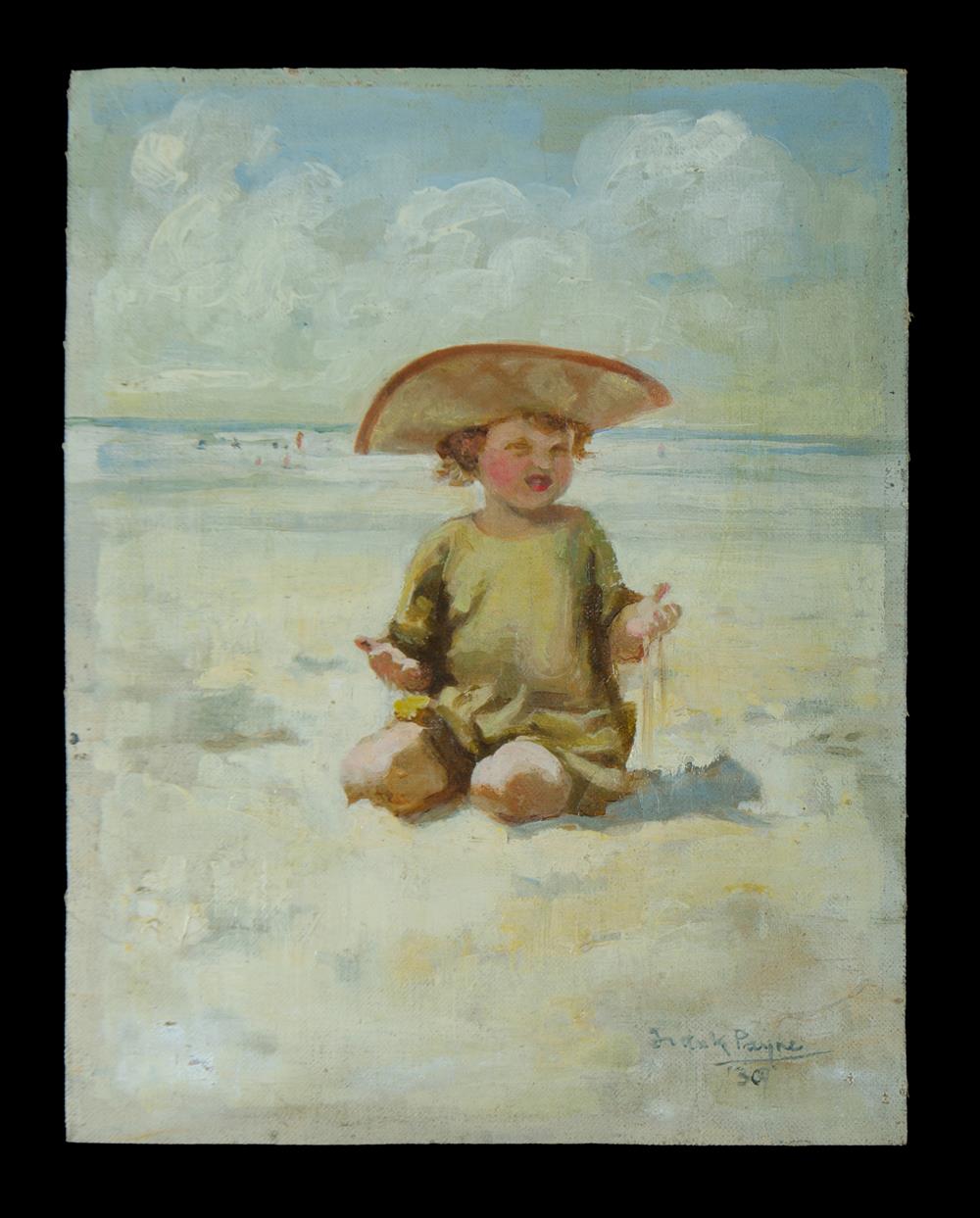 PAYNE, Frances (Frankie) (1885-1975) 'Child on a Beach,' 1930 Label verso for H Fleming & Co, Sydney. Provenance: Angeloro family collection. Oil on Canvas 27x21cm Estimate $800-1,500