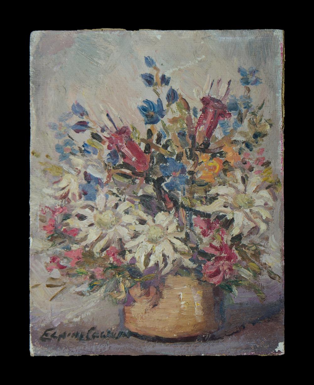 COGHLAN, Elaine (1897-1989) Vase of Mixed Blooms Provenance: Angeloro family collection. Oil on Canvas on Board 23x18cm Estimate $80-150
