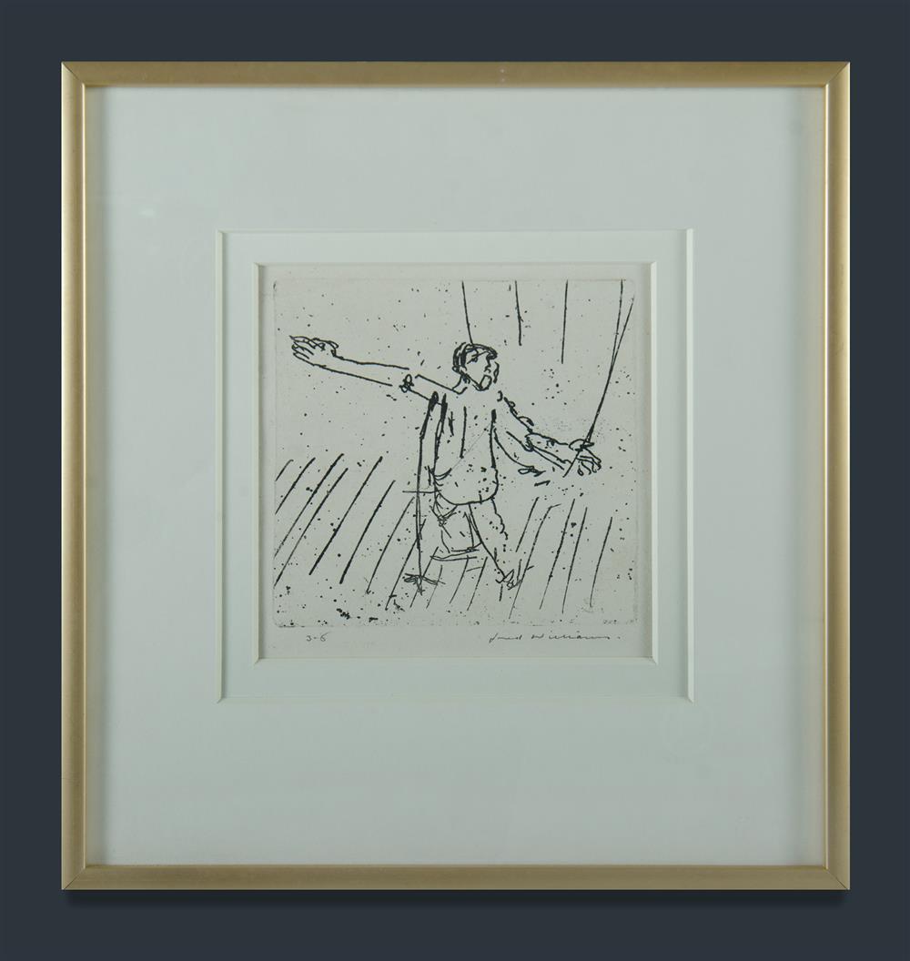 WILLIAMS, Fred (1927-1982) 'The Song,' 1955-56. Printed 1962-67 (second state) Etching 3/6 12.5x13cm Estimate $800-1,200