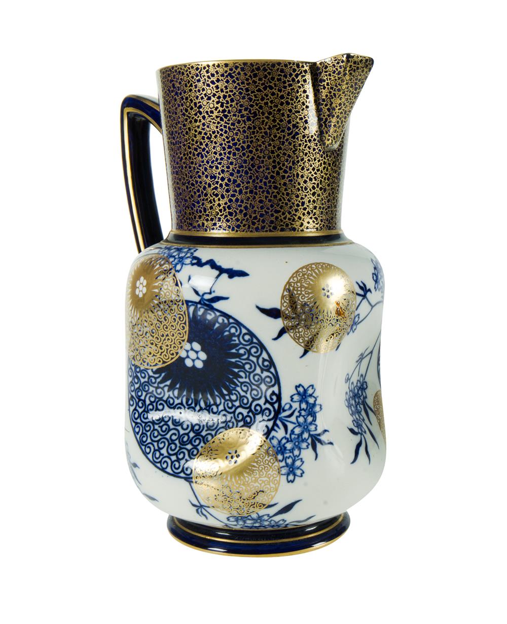 Doulton Burslem Arts & Crafts Movement Ewer. Blue & white floral decoration with gilding. H24.5cm Estimate $100-200