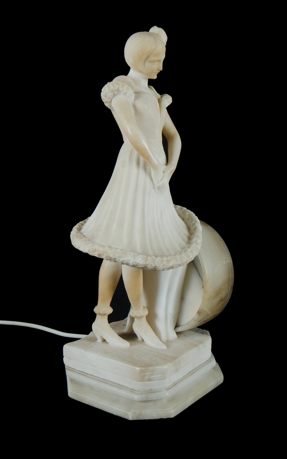 Alabaster Figural Lamp. Young woman standing next to a drum. H48cm