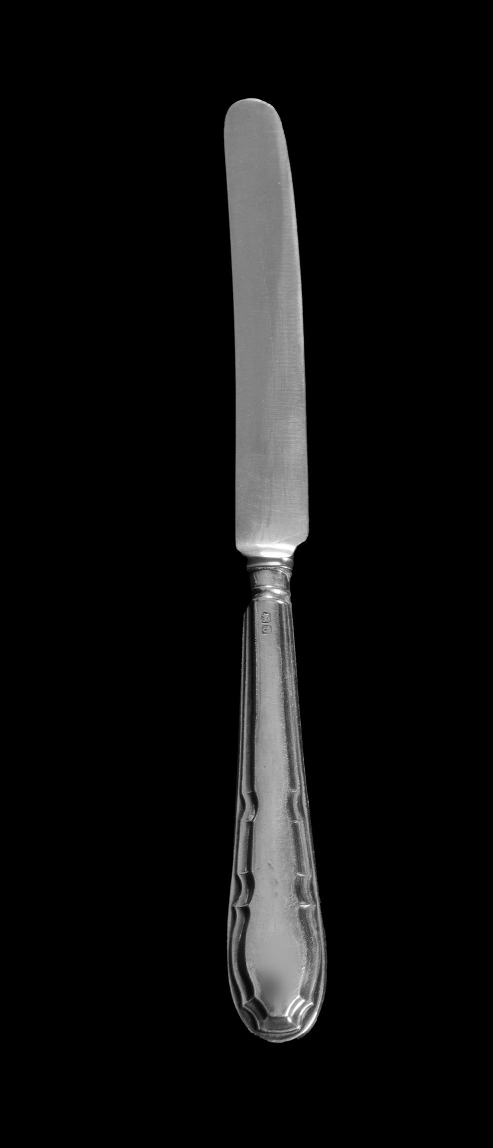 Set 6 Boxed HMSS Fruit Knives. Stainless steel blades, hollow filled handles. Sheffield 1919, by Yates Brothers. Estimate $30-60