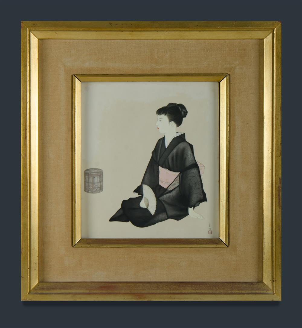 Japanese Painting on Porcelain. Seated Japanese lady in kimono. Signed. 26x23cm Estimate $150-250