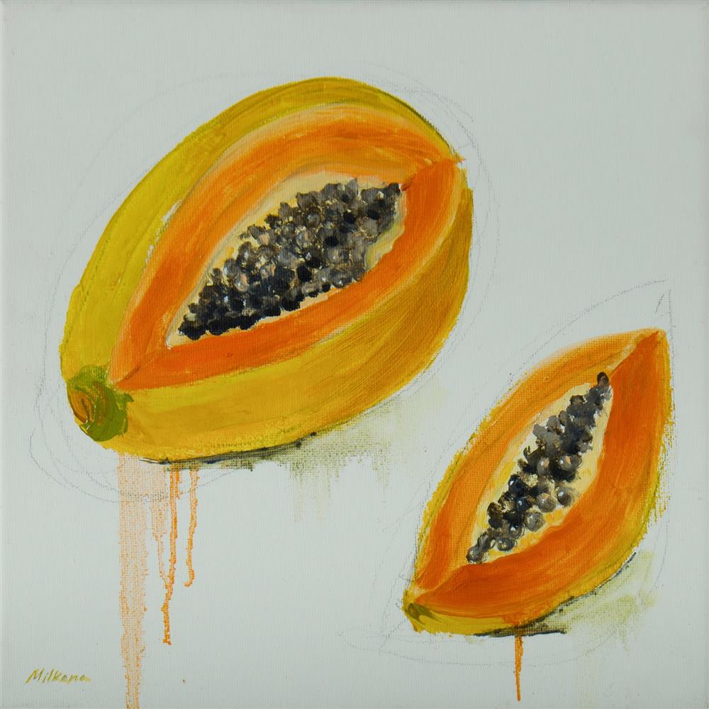 KIROV, Milkana (2) Still Life with Bananas, & Still Life with Pawpaw, 2011 Private collection, Queensland. Oil on Canvas (2) 30x30cm (each) Estimate $120-180