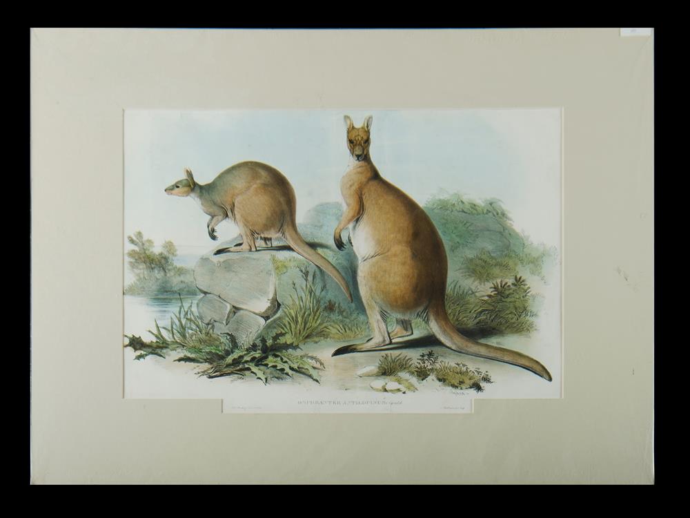 GOULD, John (1804-1881) 'Red Wallaroo, Osphranter Antilopinus' Descriptive sheet verso. (H.C. Richter). Hand Coloured Lithograph 32x48.5cm Estimate $400-600