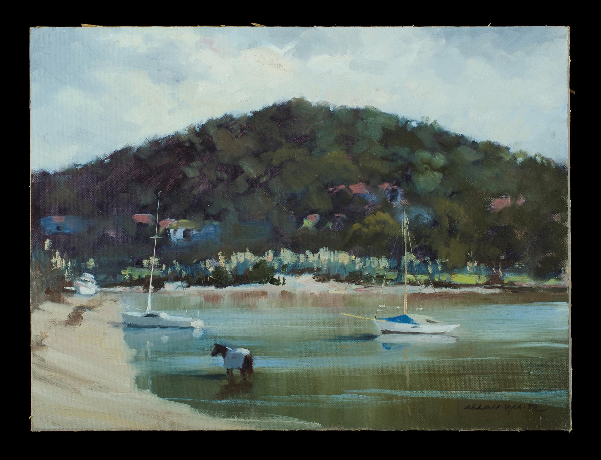 WAITE, Allan (1924-2010) 'Taking the Cure, Bayview' Oil on Canvas on Board 30x40cm PROVENANCE: Family of the Artist. Estimate $70-120