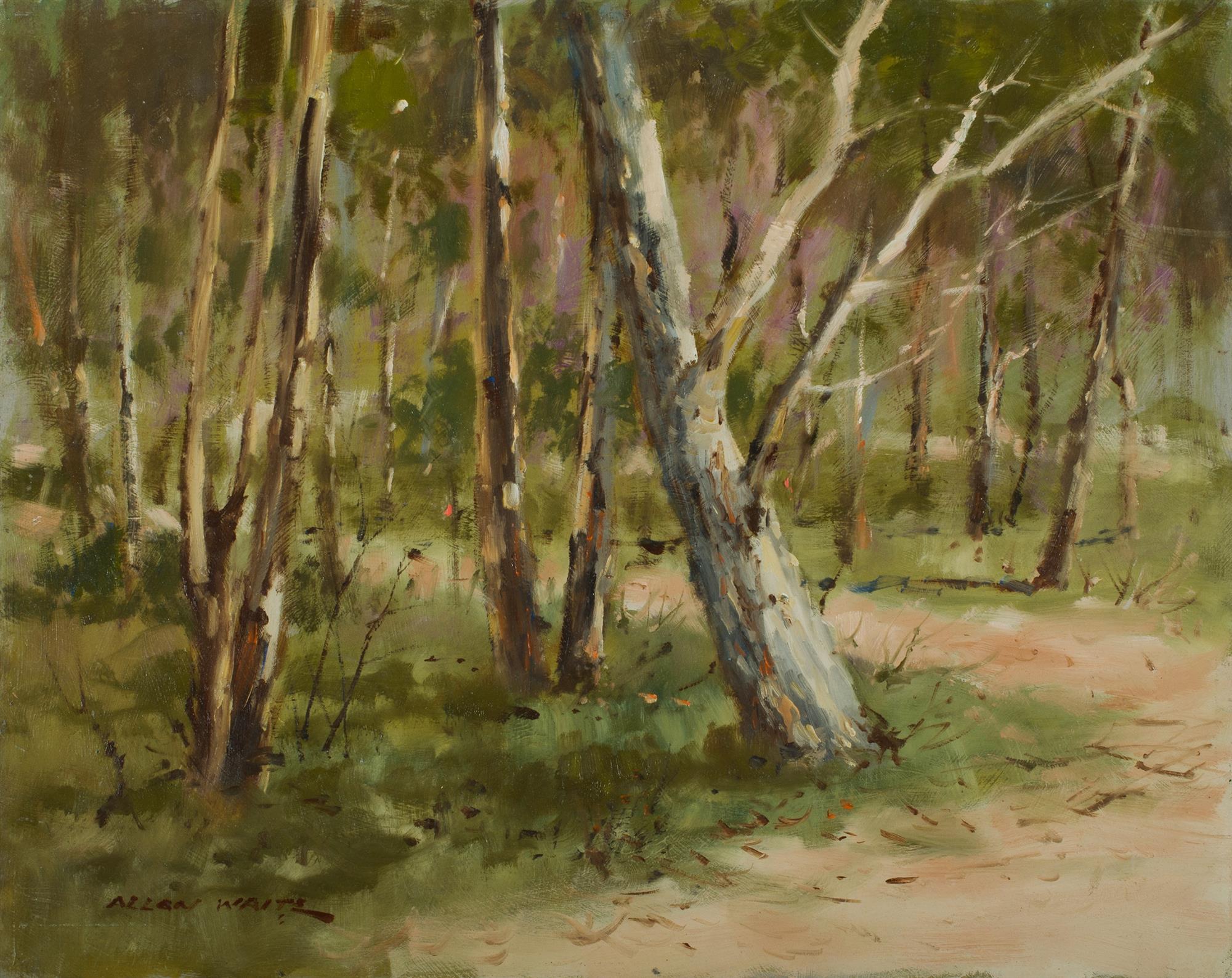 WAITE, Allan (1924-2010) (2) 'Warriewood,' from MUGC Clubhouse, c1963 (oil on canvas board); & 'Candlebark Forest' (oil on board) 40x51cm (each)Estimate $80-150