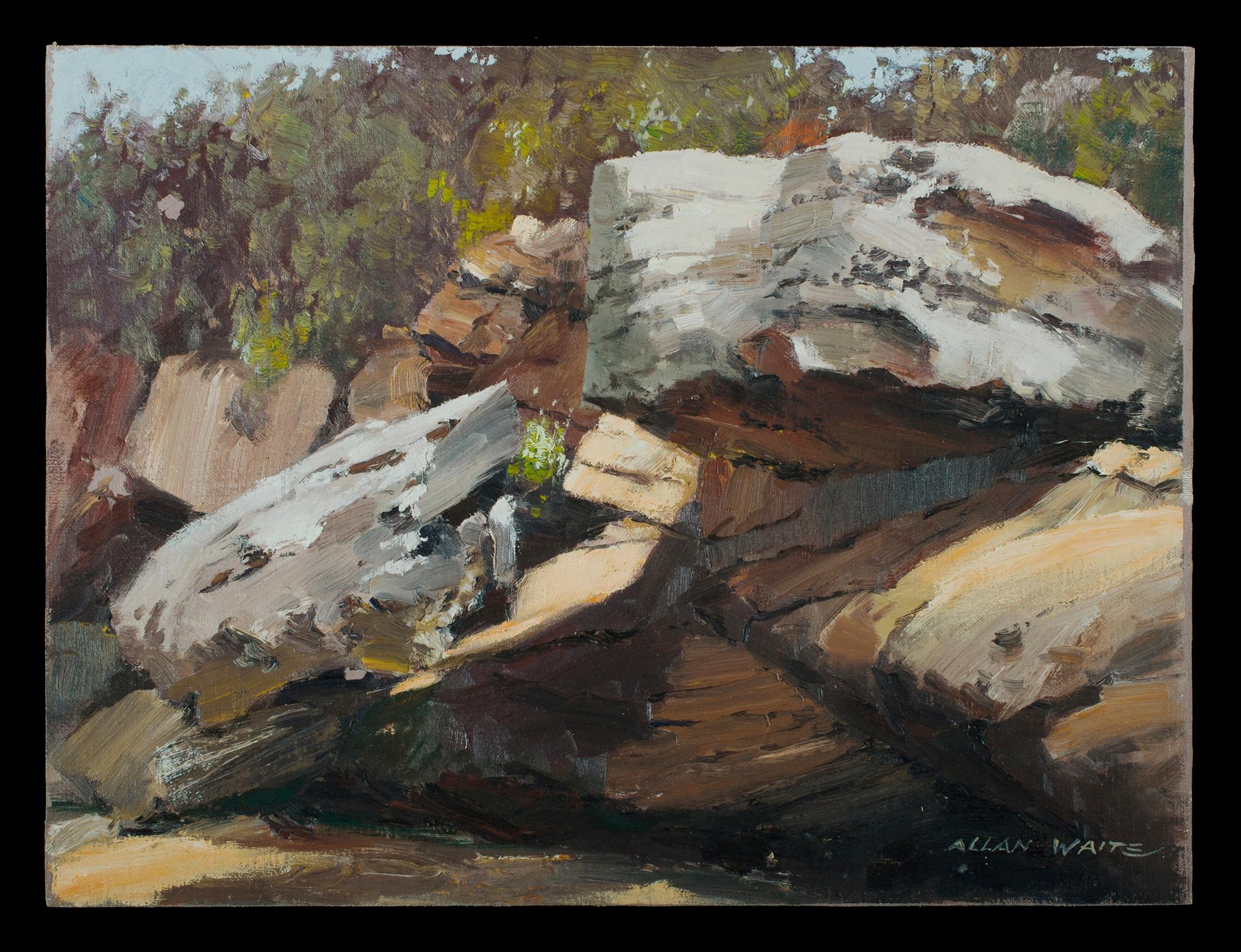 WAITE, Allan (1924-2010) (2) 'Chip Off the Old Block, Chowder Bay' (oil on canvas on board); & 'Tambourine Bay' (oil on board) 30x40cm (each)Estimate $80-150