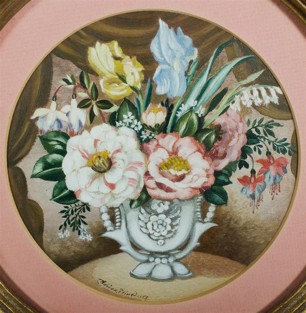 FEINT, Adrian (1894-1971) Mixed Blooms in Vase, 1953. Oil on Board Dia 14.5cm Estimate $1,000-1,500