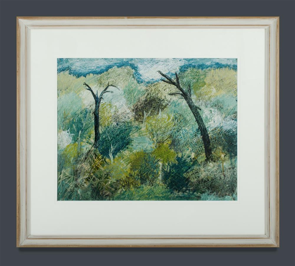ROSENGRAVE, Harry (1899-1986) 'Bush Landscape, Dandenong Ranges, Victoria,' 1961. Handwritten label verso. Oil on Paper 49.5x62cm Estimate $200-400
