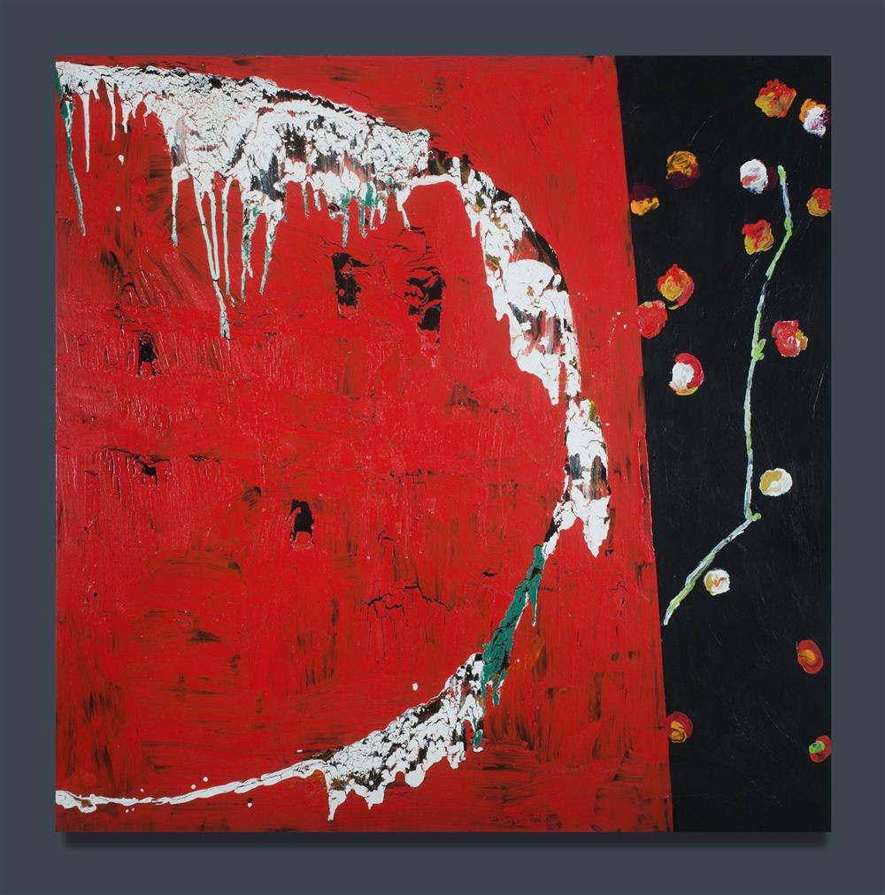LYNN, Elwyn (1917-1997) 'Red Table and Rose,' 1993. Signed & inscribed verso. Ex Robin Gibson Gallery, Sydney. Mixed Media on Canvas 175x175cm Estimate $3,000-5,000