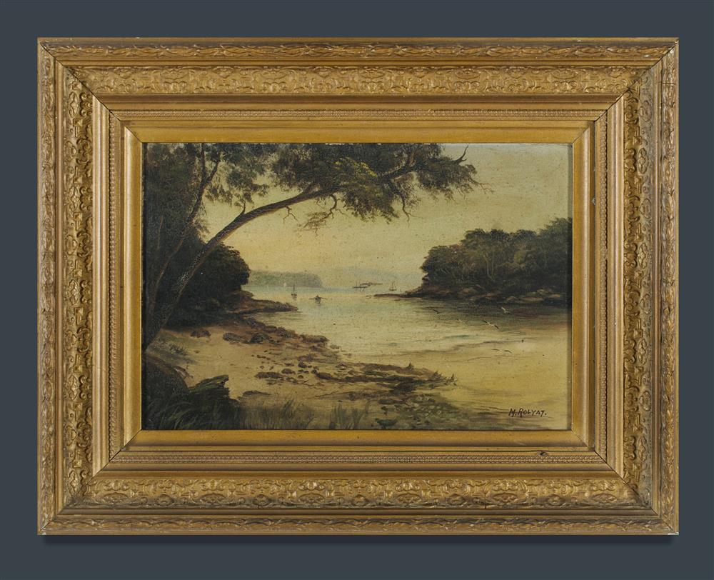 ROLYAT, M (Australian Colonial School) Parsley Bay, Vaucluse, Sydney Harbour, c1890. Oil on Board 23x34cm Estimate $150-300