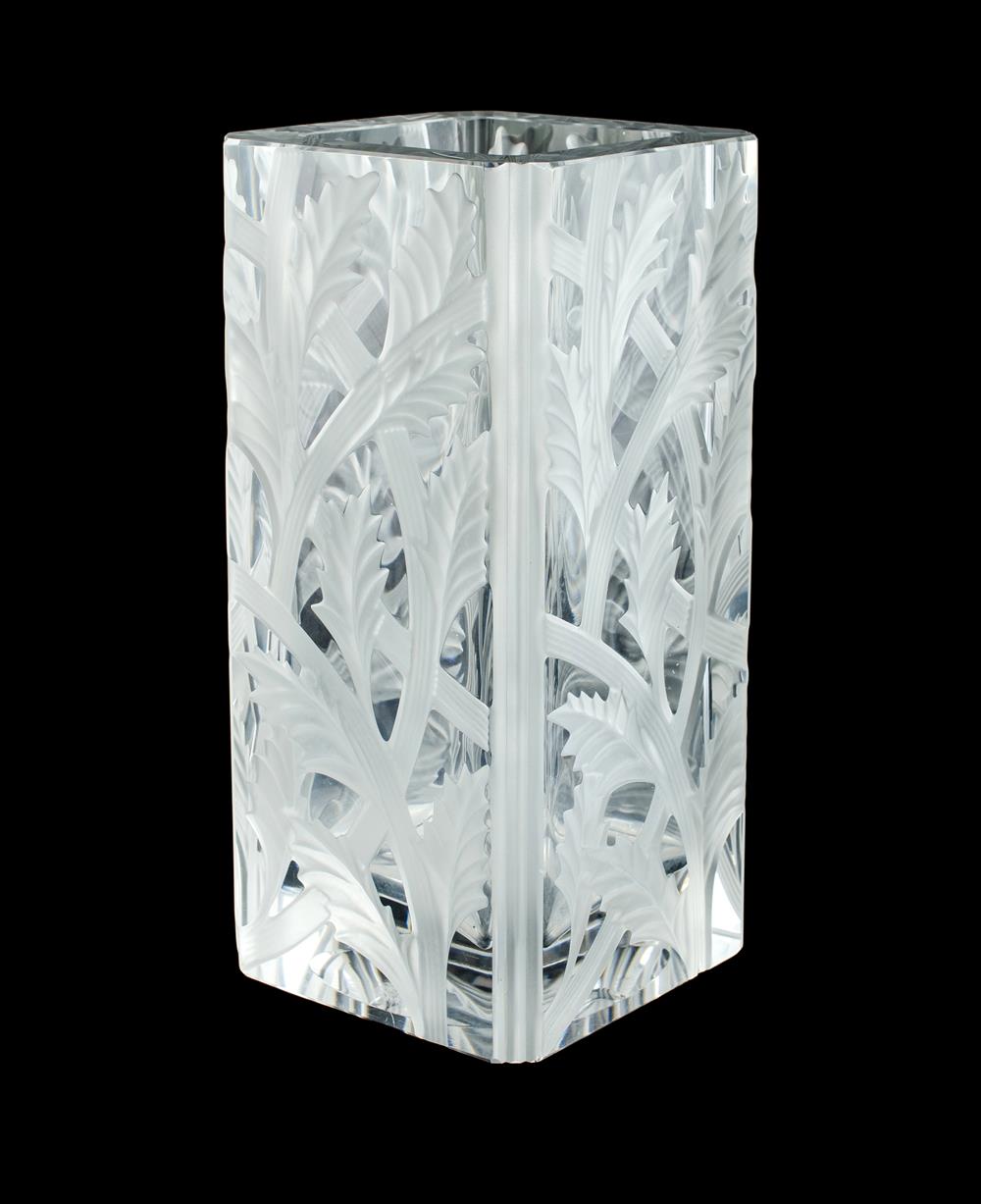 Art Deco Crystal Vase. Square section vase with cut & frosted decoration of celery. (H23cm) Estimate $250-350
