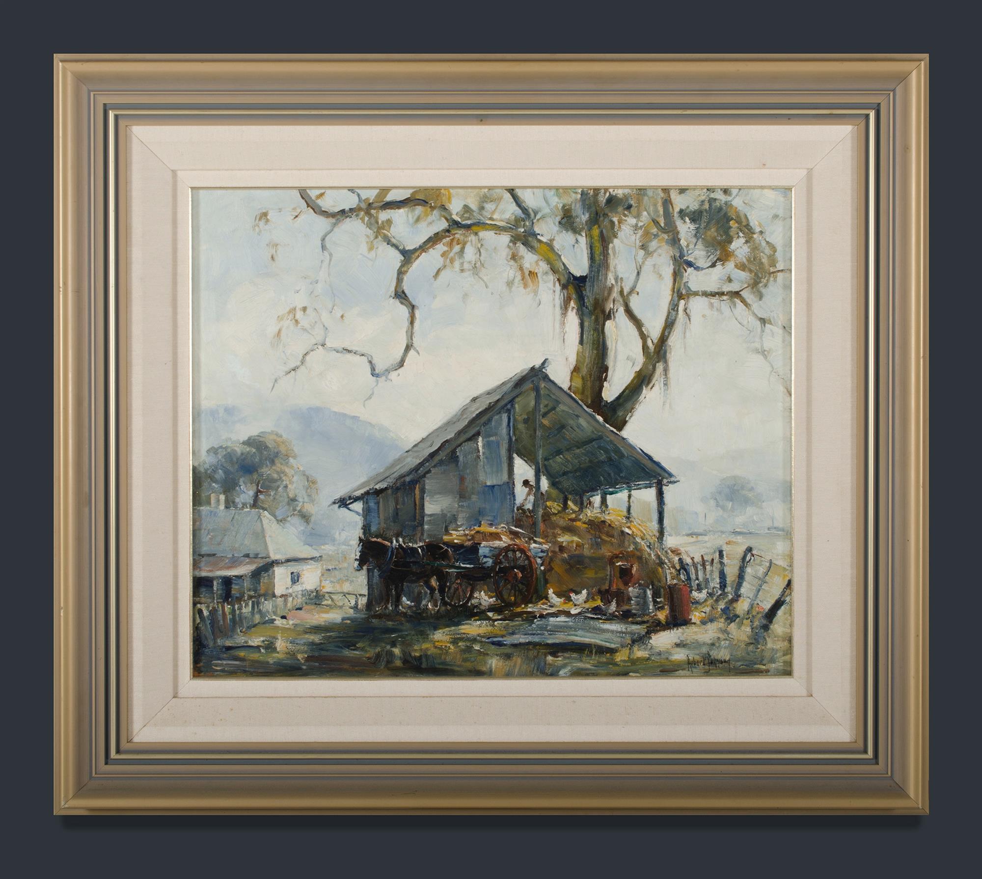 JOHNSON, Robert (1890-1964) Farm Yard Oil on Canvas 44.5x54.5cm PROVENANCE: Sotheby's, Melbourne, 24th July 1988 (lot 289). Original invoice available. Estimate $1,000-2,000