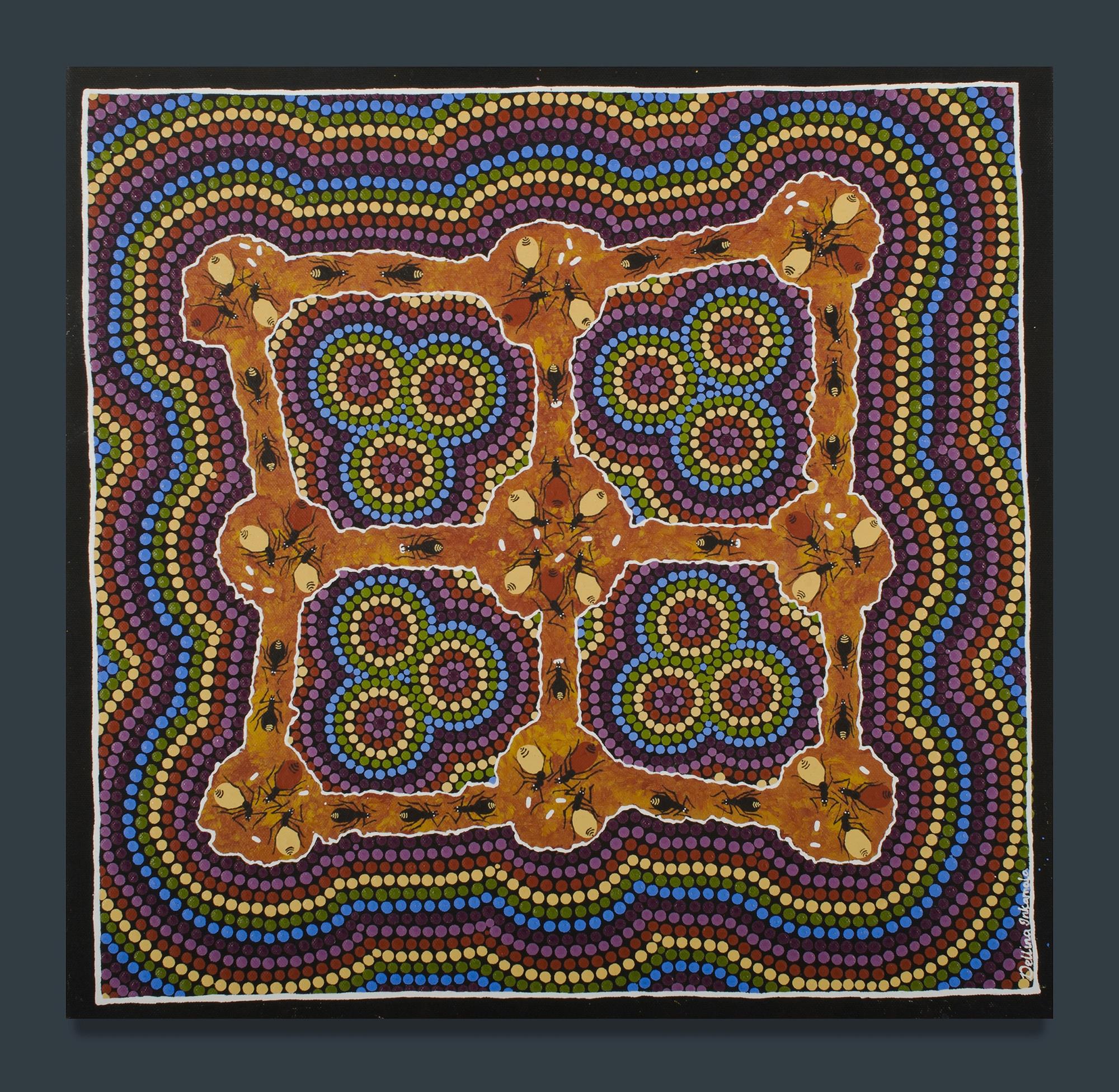 INKAMALA, Dellina (Aboriginal b.1984) 'Honey Ant Dreaming,' 2008. Acrylic on Canvas 49x48cm PROVENANCE: Ngurratjuta Art Centre, cat #NGUR08-DIN7581 (certificate of authenticity included); private collection, ACT.Estimate $60-120