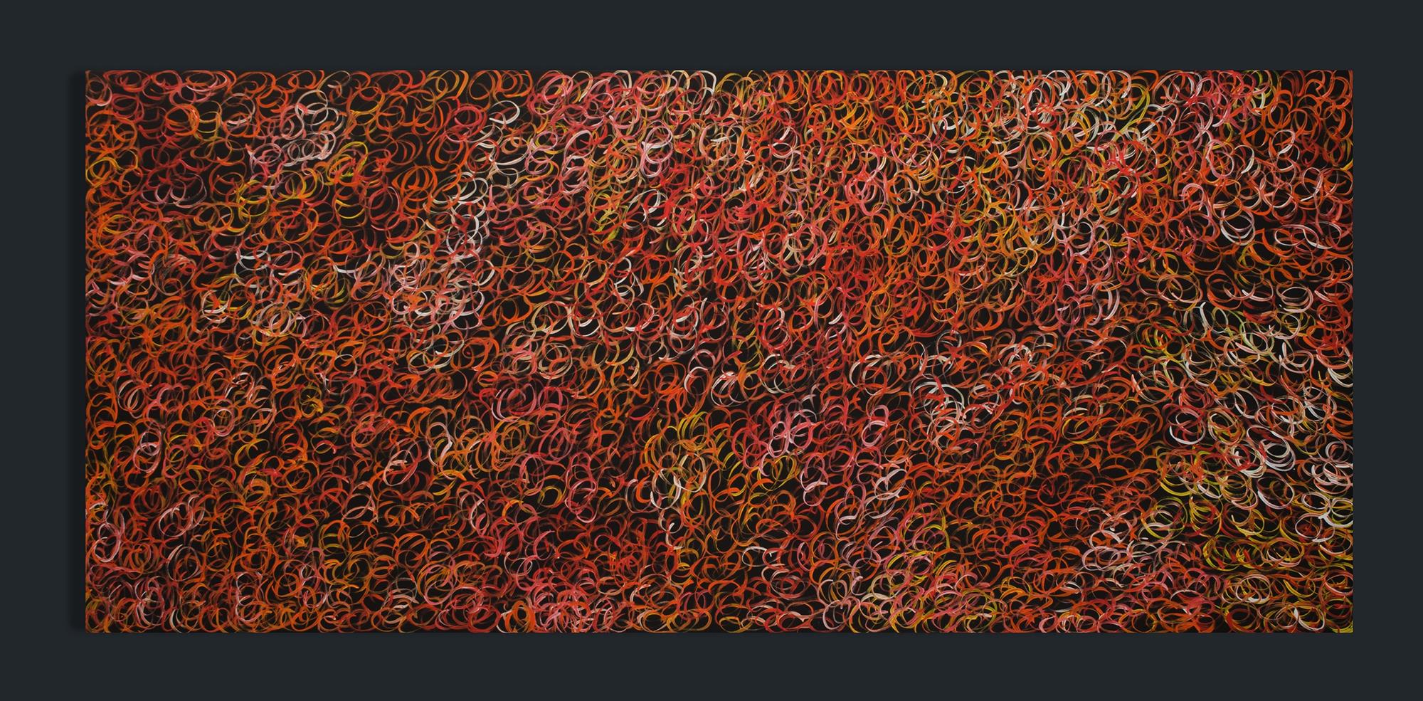 PWERLE, Gracie Morton (Aboriginal born c.1956) 'Mountain Devil Lizard Dreaming,' 2019. Signed verso. Desert Masters certificate of authenticity, cat #GMP2225. Acrylic on Canvas 200x89cmEstimate $600-1,000