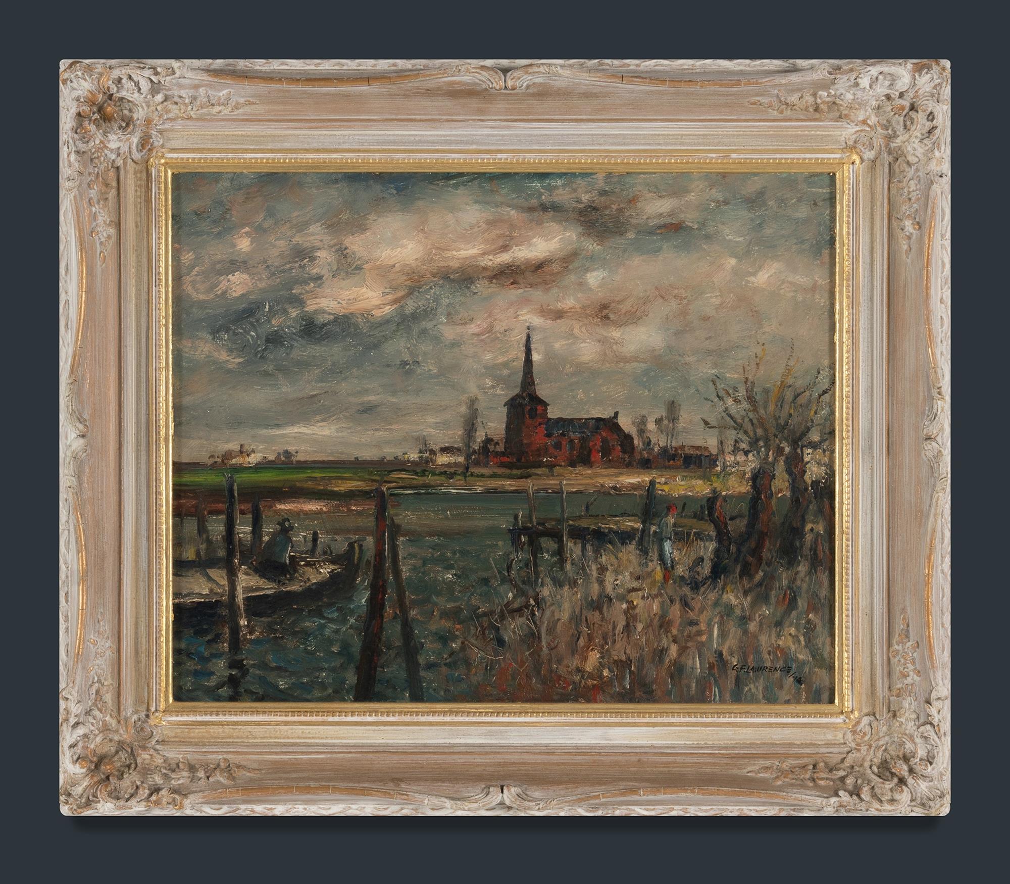 LAWRENCE, George Feather (1901-1981) 'Red Church, Holland,' 1974. Exhibited: Lister Gallery, Perth February 1976, cat #18 (catalogue verso). Oil on Board 40x50cm PROVENANCE: Davidson Auctions 22nd Feb 2004, lot 213; private collection, Sydney.Estimate $600-900