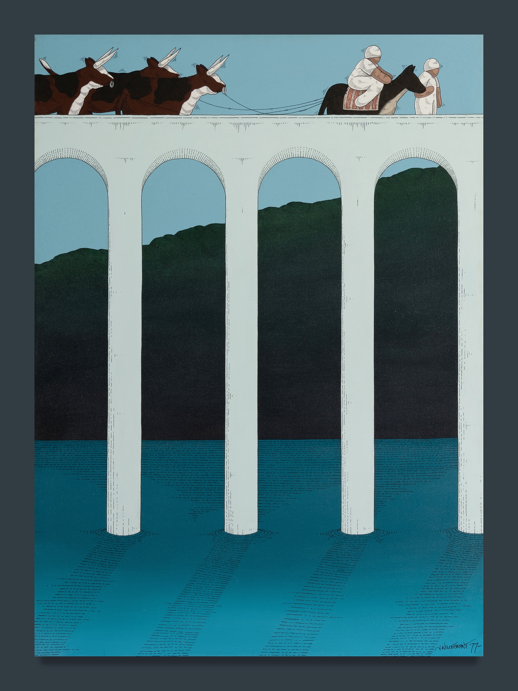 WILLEBRANT, James (b.1950) 'Viaduct Procession,' 1977. Acrylic on Canvas 122x88cmEstimate $800-1,500