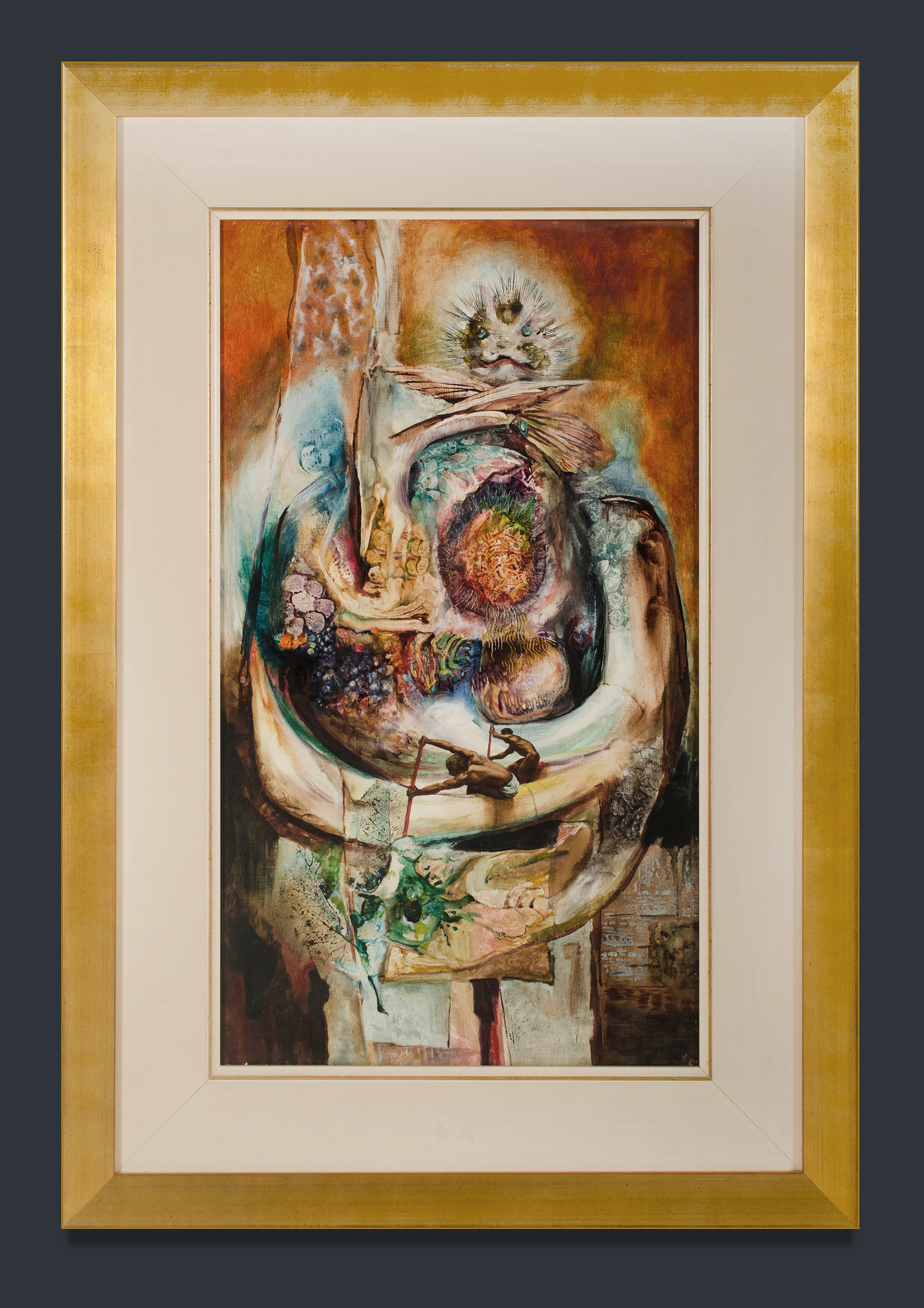 GLEESON, James Timothy (1915-2008) 'Moment of Crisis' Signed Gleeson lower right. Oil on Board 80x45.5cm PROVENANCE: Bonhams Goodman, 26th April 2005, lot 5; Davidson Auctions 9th Sept 2006, lot 101; private collection, Sydney.Estimate $10,000-16,000