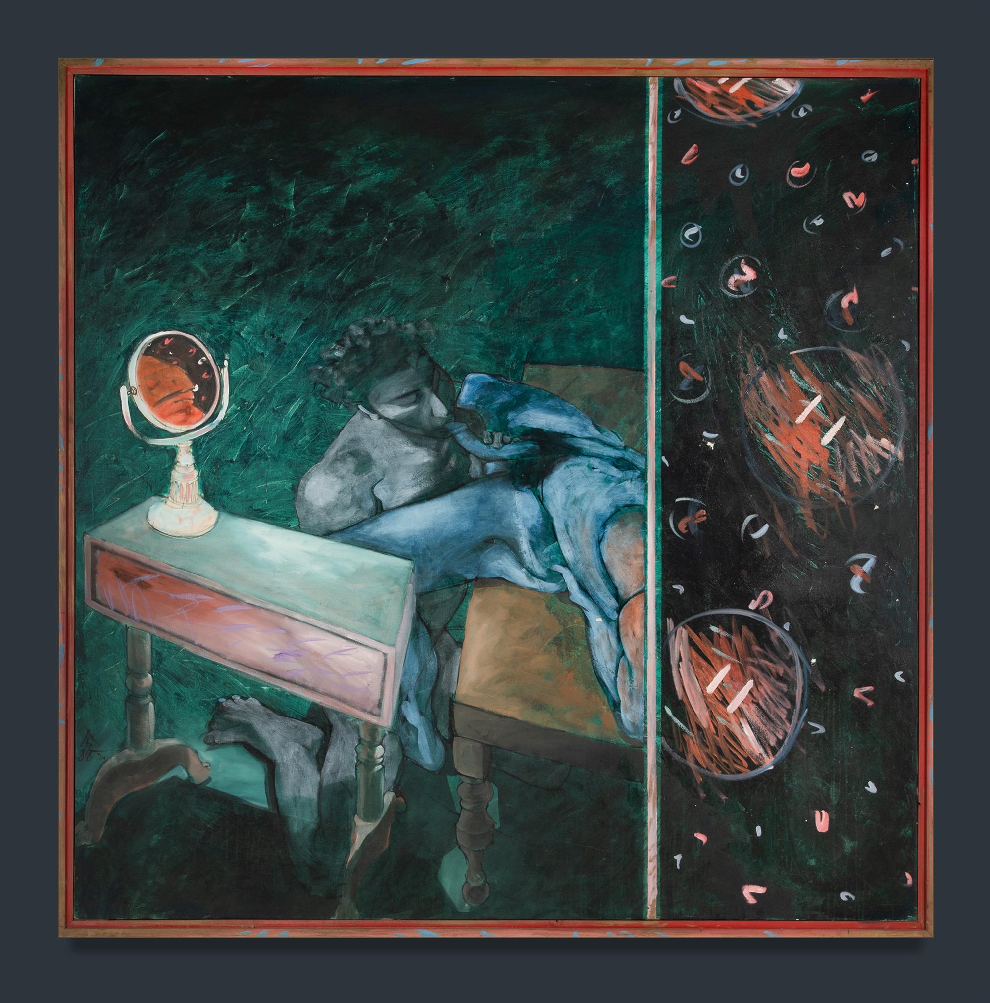 ABERCROMBIE, Sam (b.1945) 'Blue Banana' Monogrammed & dated 85 (?). Signed & titled verso. Ex Holdsworth Contemporary Gallery, Sydney. Oil on Canvas 185x185cmEstimate $600-1,000