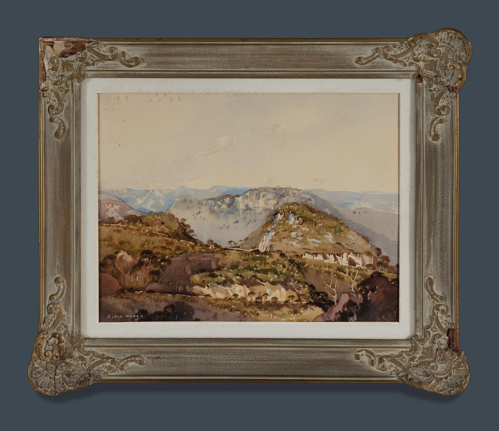 MORRIS, Rufus (1907- 1982) 'Blue Mountain Passes' W/Clr 34x44.5cm PROVENANCE: Private collection, Melbourne.Estimate $100-300