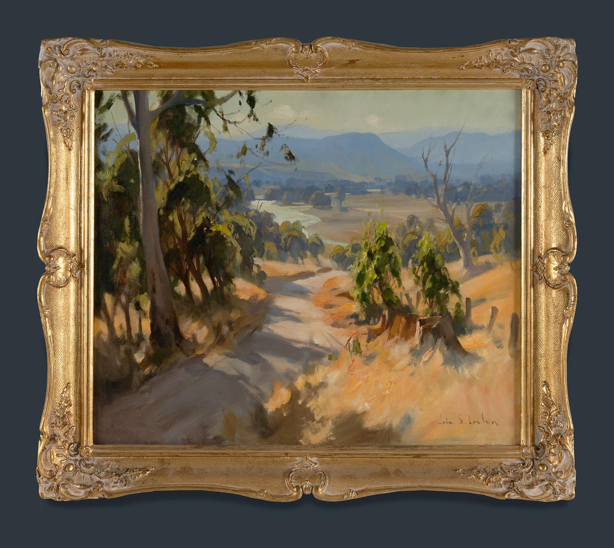 LOXTON, John S (1903-1969) Road to the Valley Oil on Canvas 50x60cm PROVENANCE: Private collection, Melbourne.Estimate $700-1,200