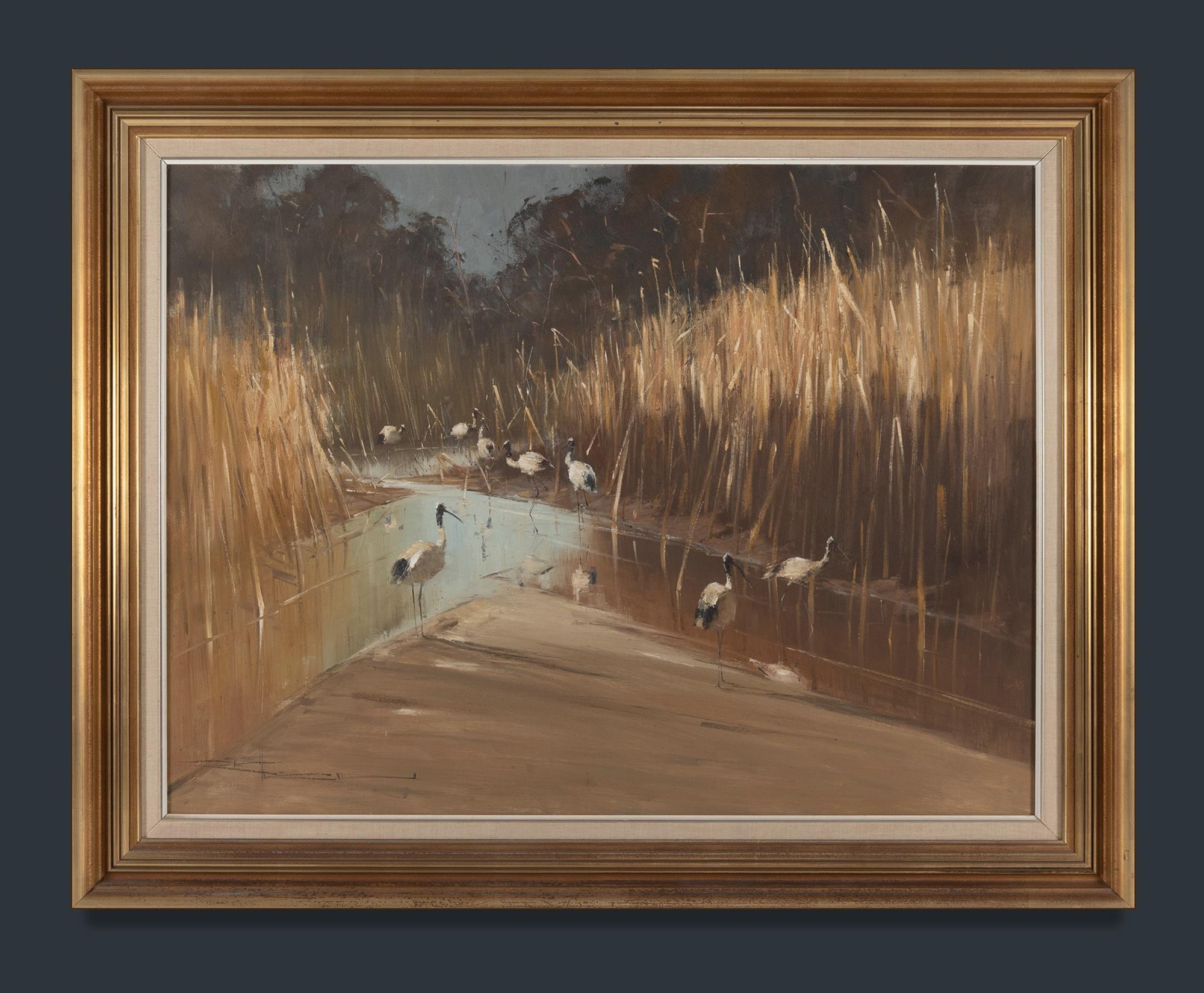 HAGAN, Robert (b.1947) 'Egrets Haven' Greythorn Galleries, Melbourne. label verso. Oil on Canvas on Board 90x121cmEstimate $600-1,000