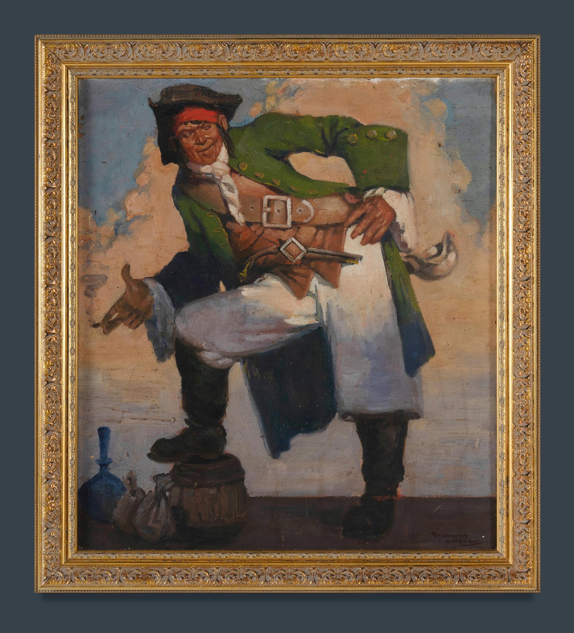 LINDSAY, Raymond (1904-1960) Smoking Pirate with Loot, 1934. Oil on Canvas on Board 44.5x39.5cmEstimate $400-700
