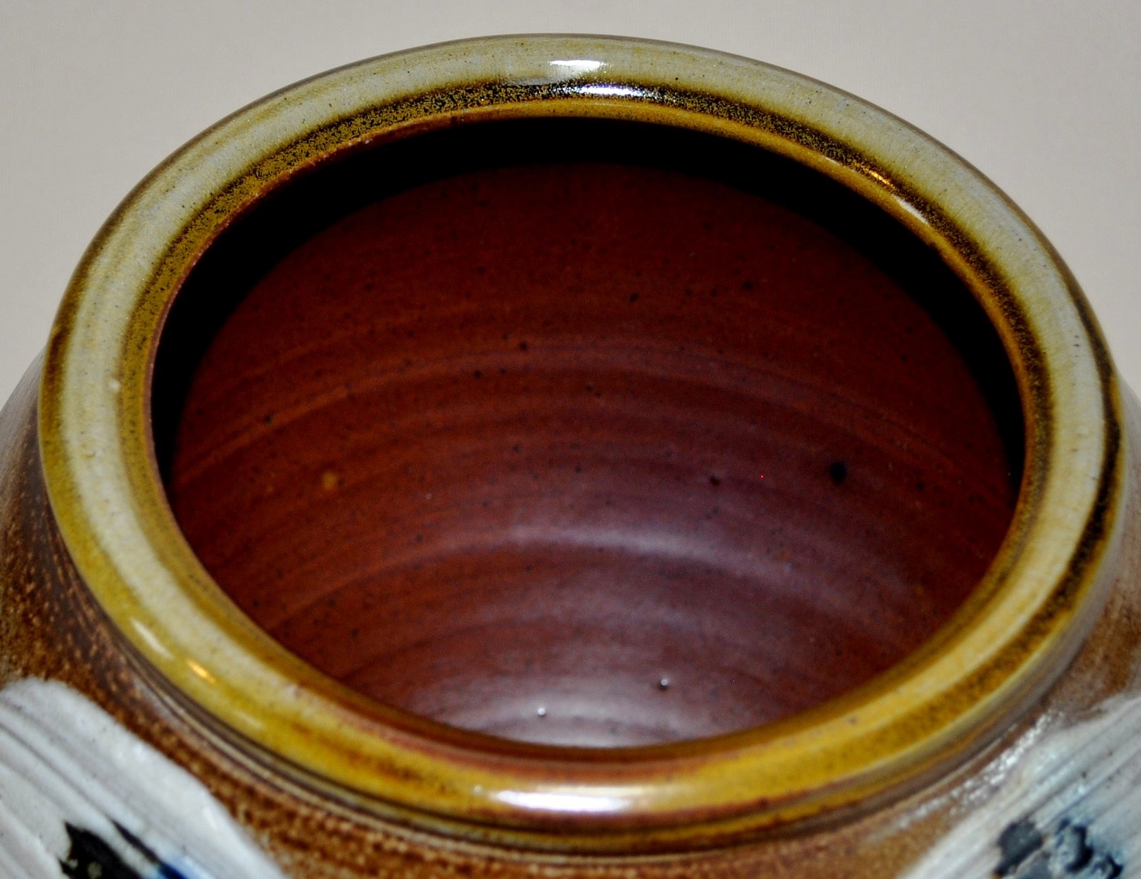 McCONNELL Phillip (b.1947), Large Stoneware Vase. Thin brushed hakeme over iron, & brushed hakeme patches with iron & cobalt decoration, teadust wash to rim. (H22cm)Estimate $300-500