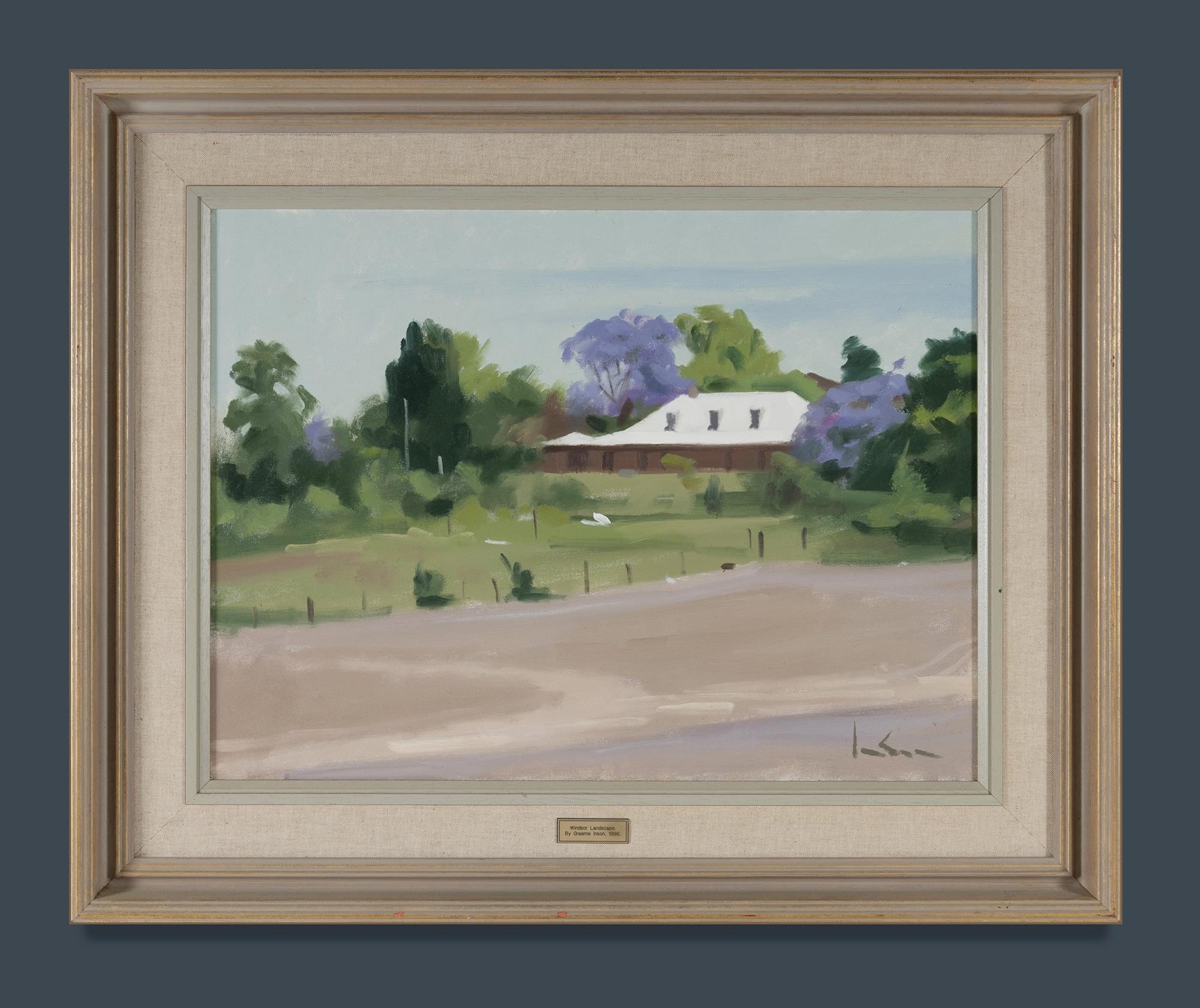 INSON, Graeme (1923-2000) 'Windsor Landscape,' 1996. Oil on Canvas on Board 44.5x59cmEstimate $300-500