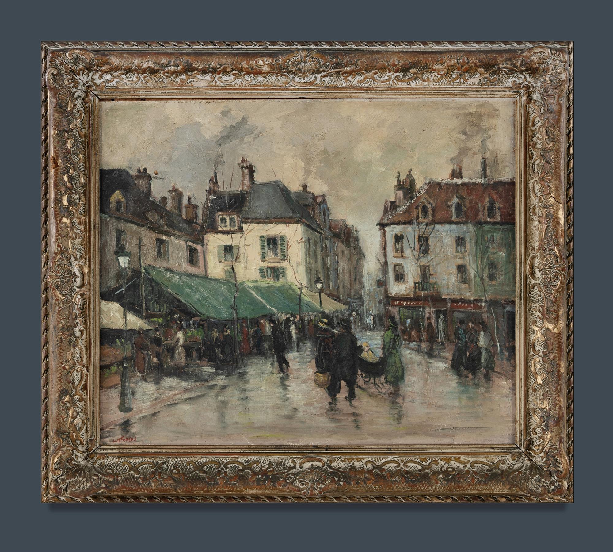 FOREAU, Louis Henri (French 1866-1938) Paris Street Market Signed lower left Oil on Board 50x60cmEstimate $300-500