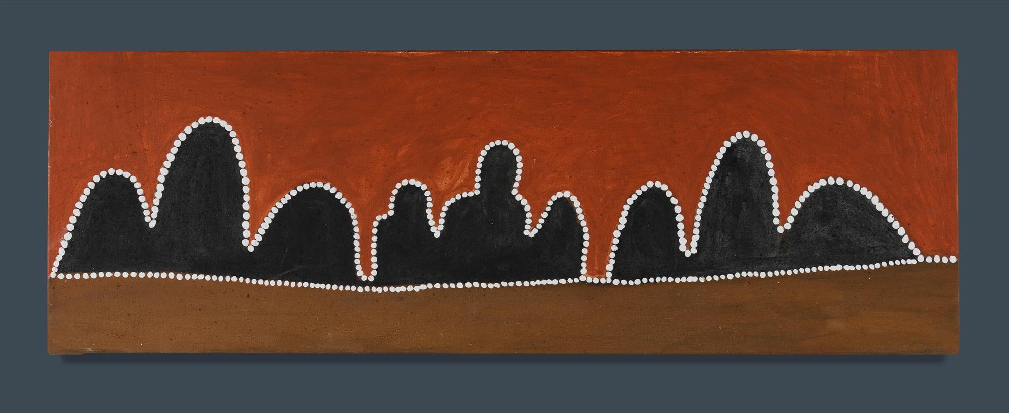 JULI, Mabel (Aboriginal b.1933) Gooloongnoorren (Katie Yard) Inscribed verso with Warmun Art Centre cat. #WAC 157/12 (certificate available) Natural Earth Pigments on Canvas 90x30.5cmEstimate $600-1,000