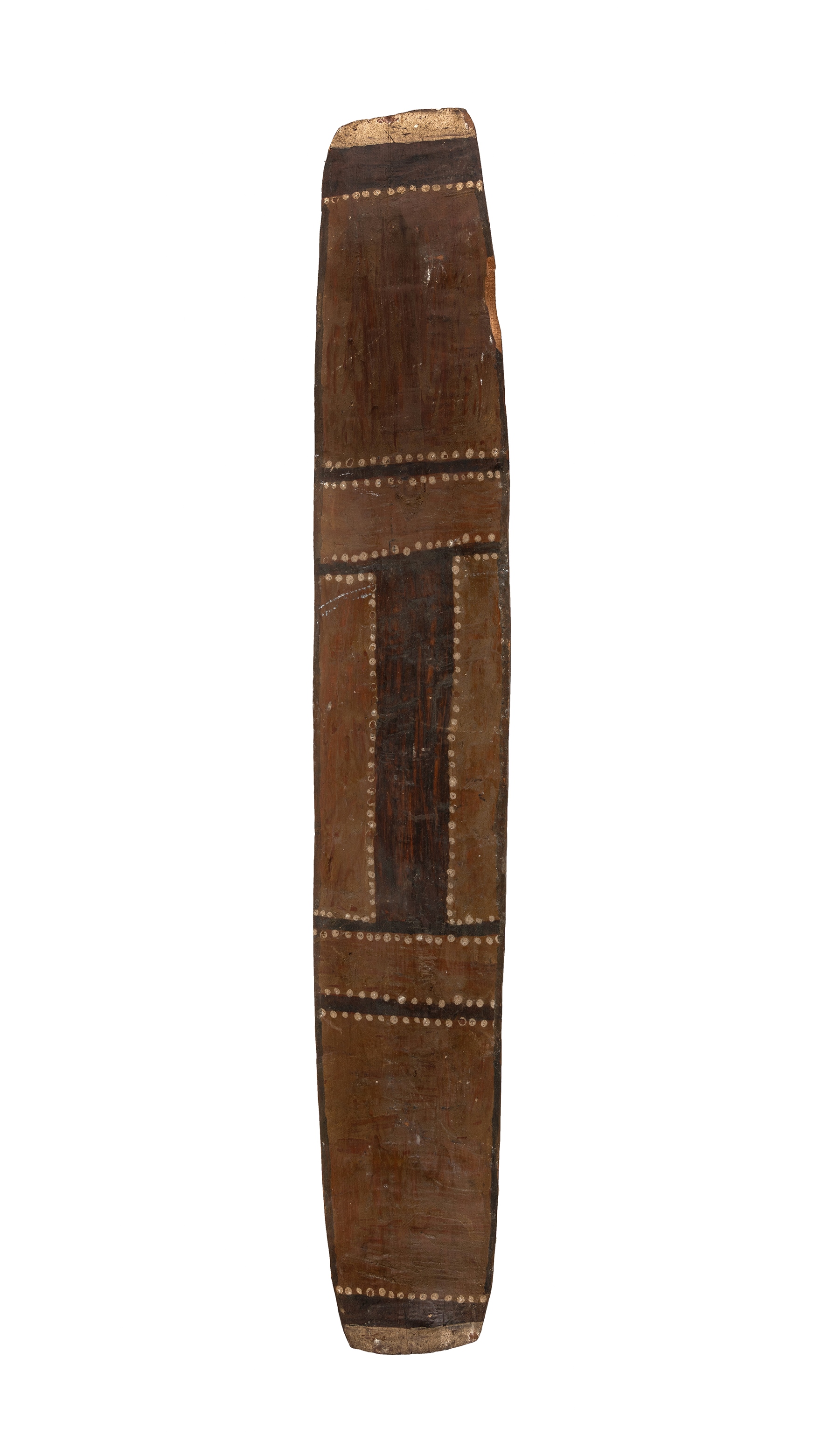 Western Australian Aboriginal Shield. Decorated with natural earth pigments. (H88cm) PROVENANCE: Estate of Ray Hughes.Estimate $300-500
