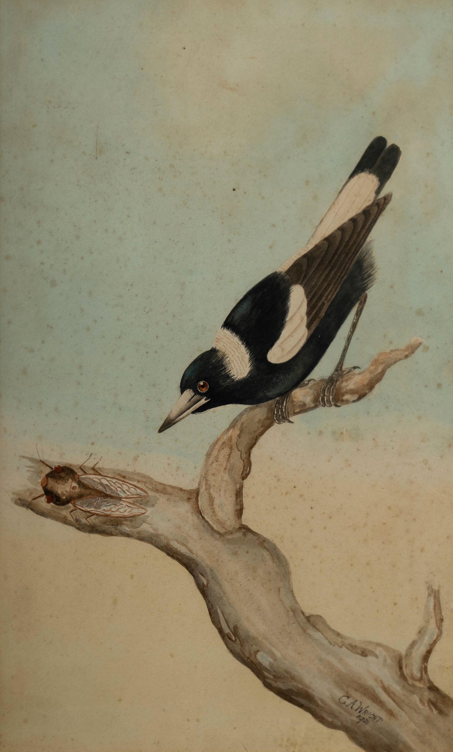 WRIGHT, G A (2) Magpie & Cicada, 1921; & Finches & Wrens, 1924. W/Clr (2) 48x29cm (each)Estimate $200-400