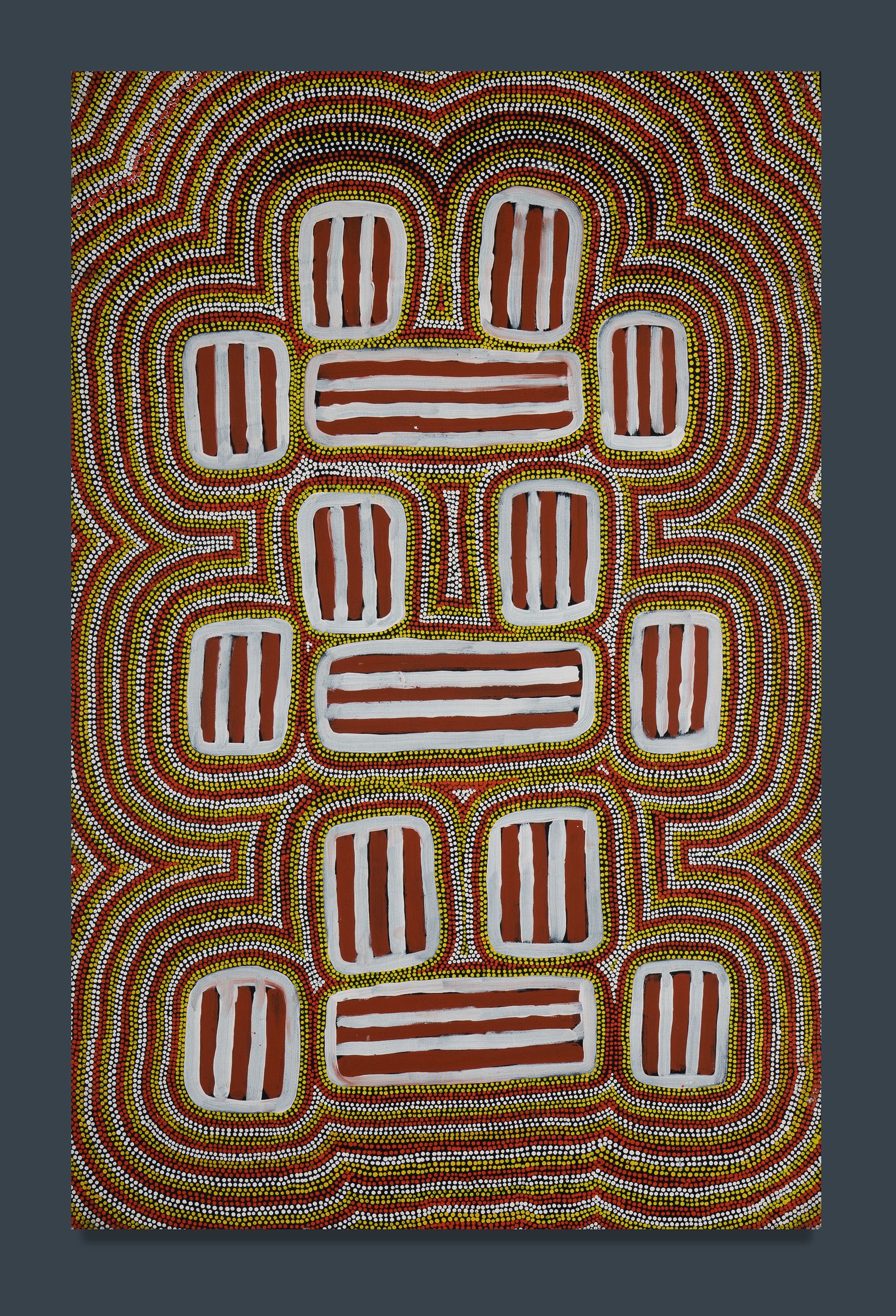 KNGWARREYE, Rita 'Women's Ceremony,' 1995. Ex Jinta Desert Art (stamp verso); cat #SN-2107. Acrylic on Canvas 123x80cmEstimate $180-350
