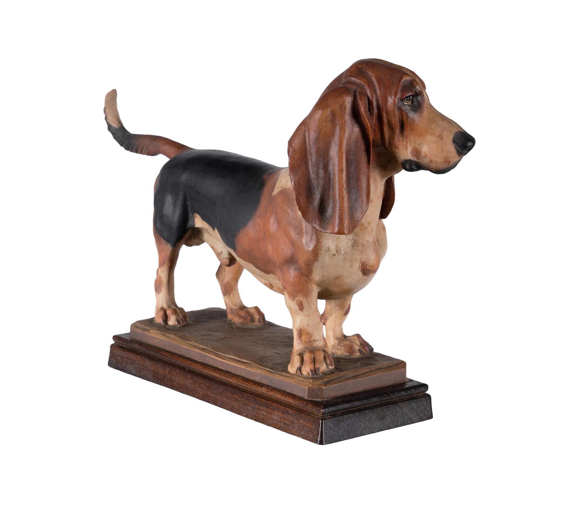 Carved Wooden Basset Hound.