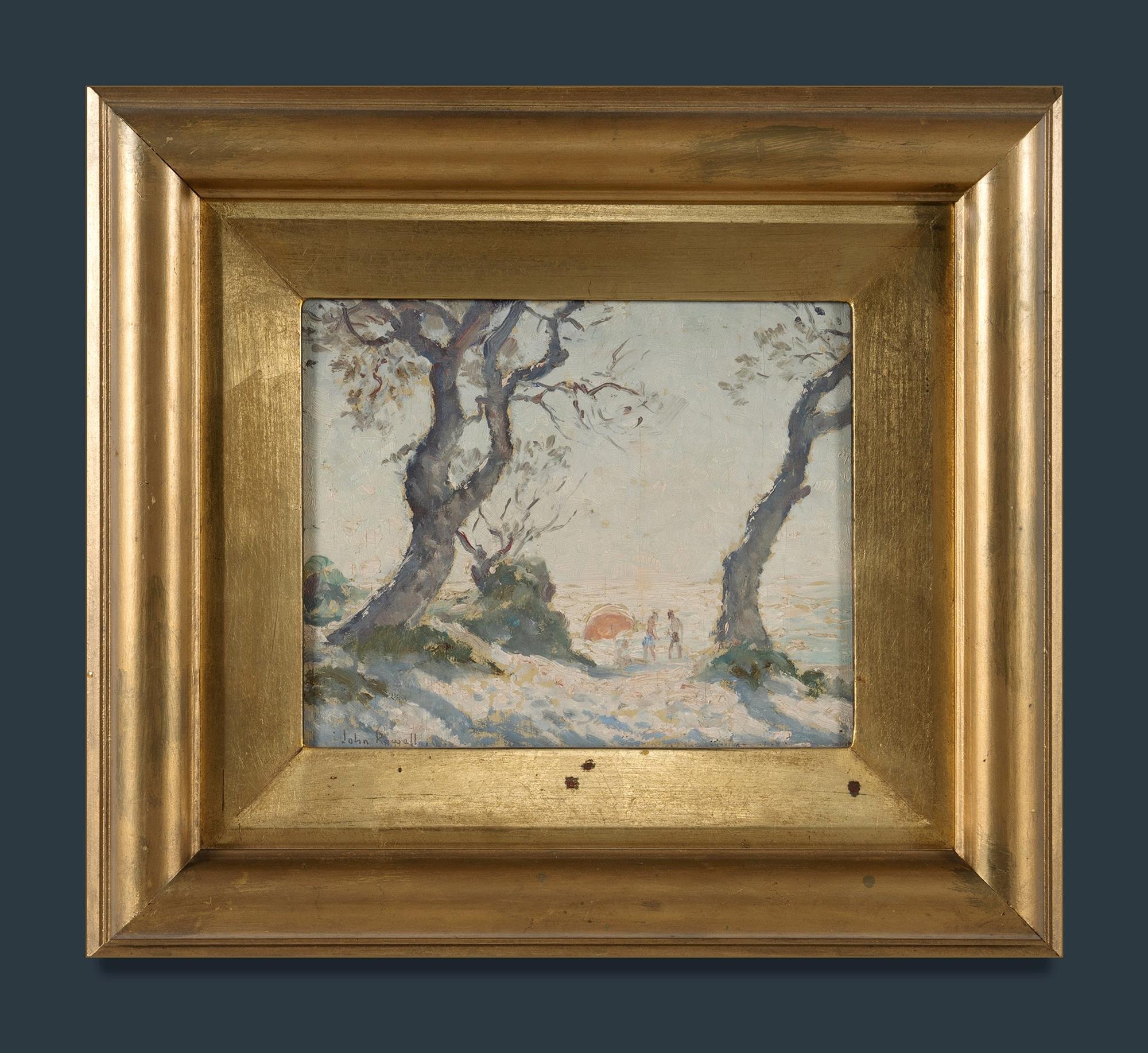 ROWELL, John (1894-1973) 'A Glimpse of the Beach' Artist label verso (from previous family). Provenance: private collection, Tasmania. Oil on Board 20x24.5cmEstimate $450-750