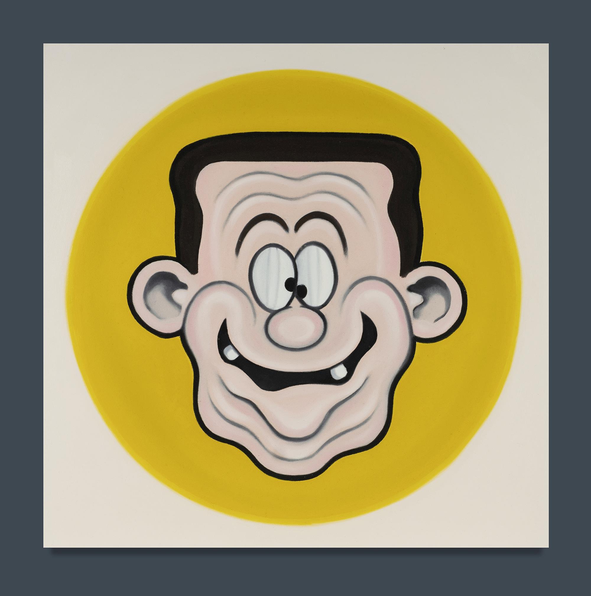 GIBSON, Jeff (b.1958) 'California Test of Personality,' 1992. Accompanying text sheet. Signed & dated verso, and with exhibition label. Oil on Canvas 61x61cmEstimate $150-250