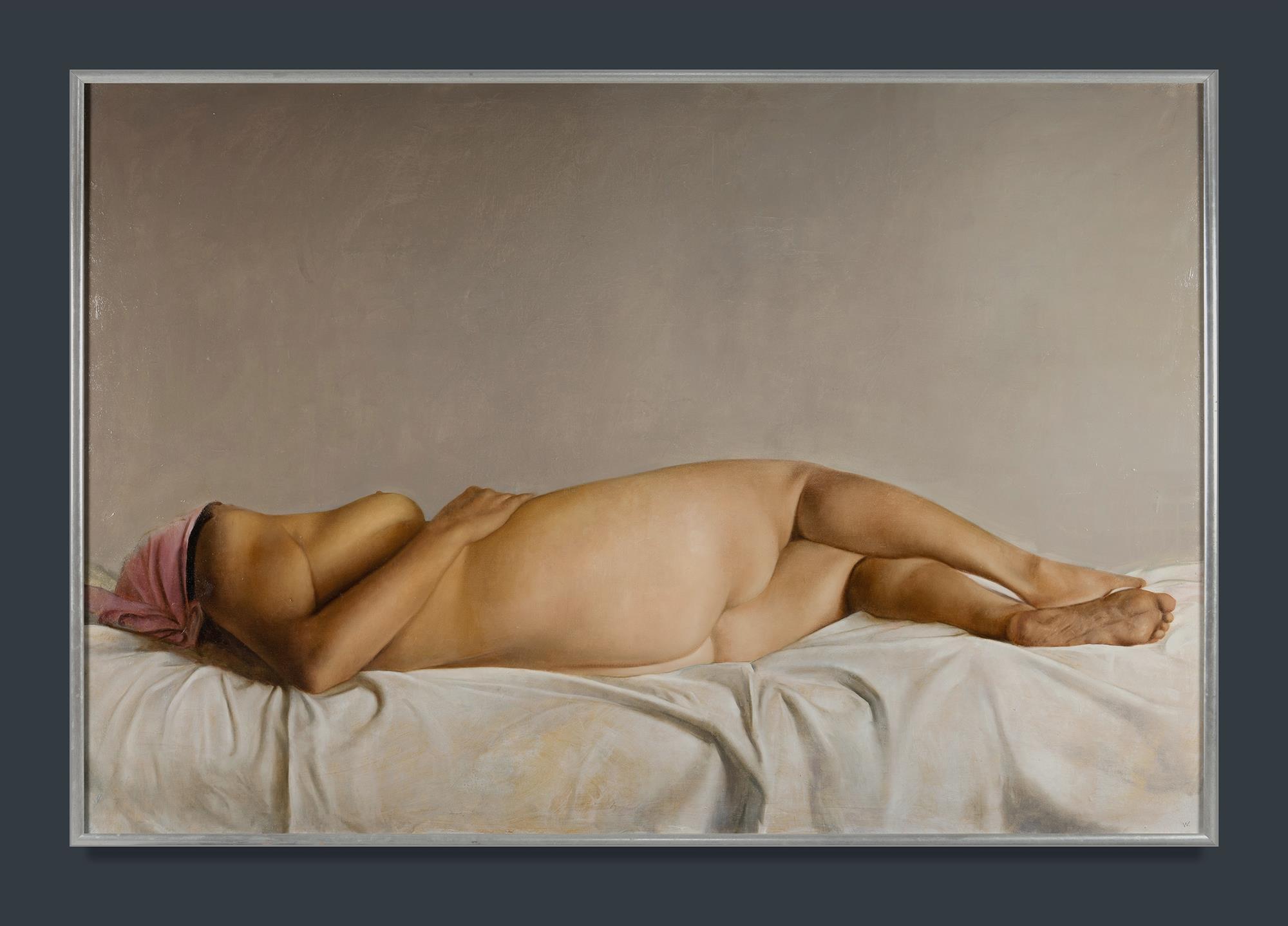 WESTWOOD, Bryan (1930-2000) Sleeping Nude Signed 'W' lower right. Provenance: Estate late Sally Burrows, art gallery director, Sydney 1970s-1990s. Oil on Canvas on Board 101x150cmEstimate $2,500-4,500