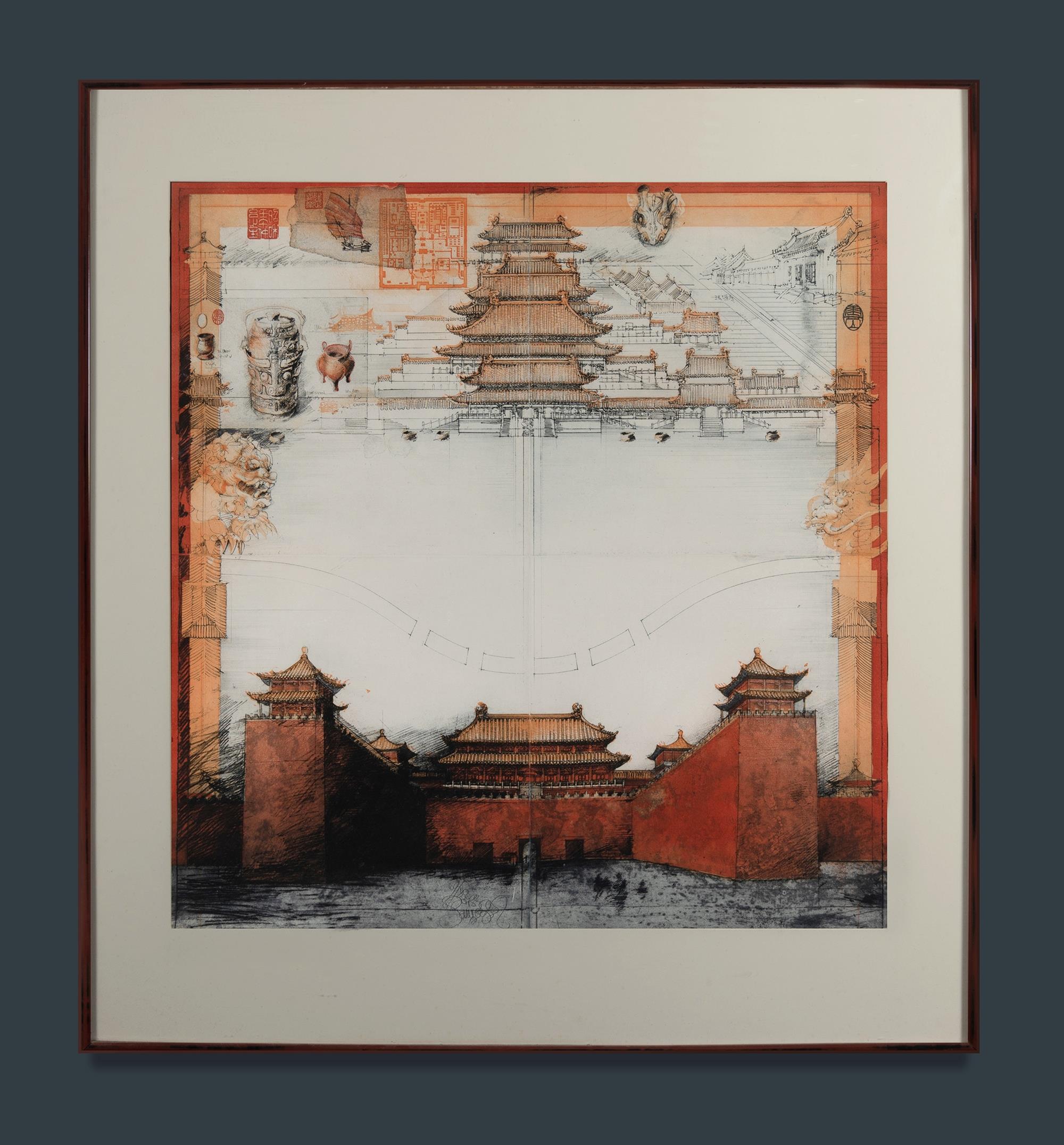 SCHMEISSER, Jorg (1942-2012) The Forbidden City, 1981. Provenance: Estate late Sally Burrows, art gallery director, Sydney 1970s-1990s. Coloured Etching 69/80 81.5x79cmEstimate $200-400