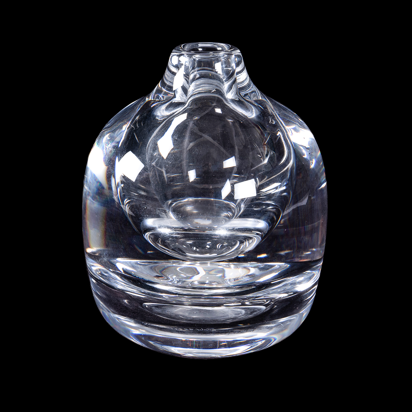 Göran WARFF Kosta Glass Specimen Vase. Squat bulbose vase in clear glass. Engraved signature to base. (H14cm)Estimate $50-100
