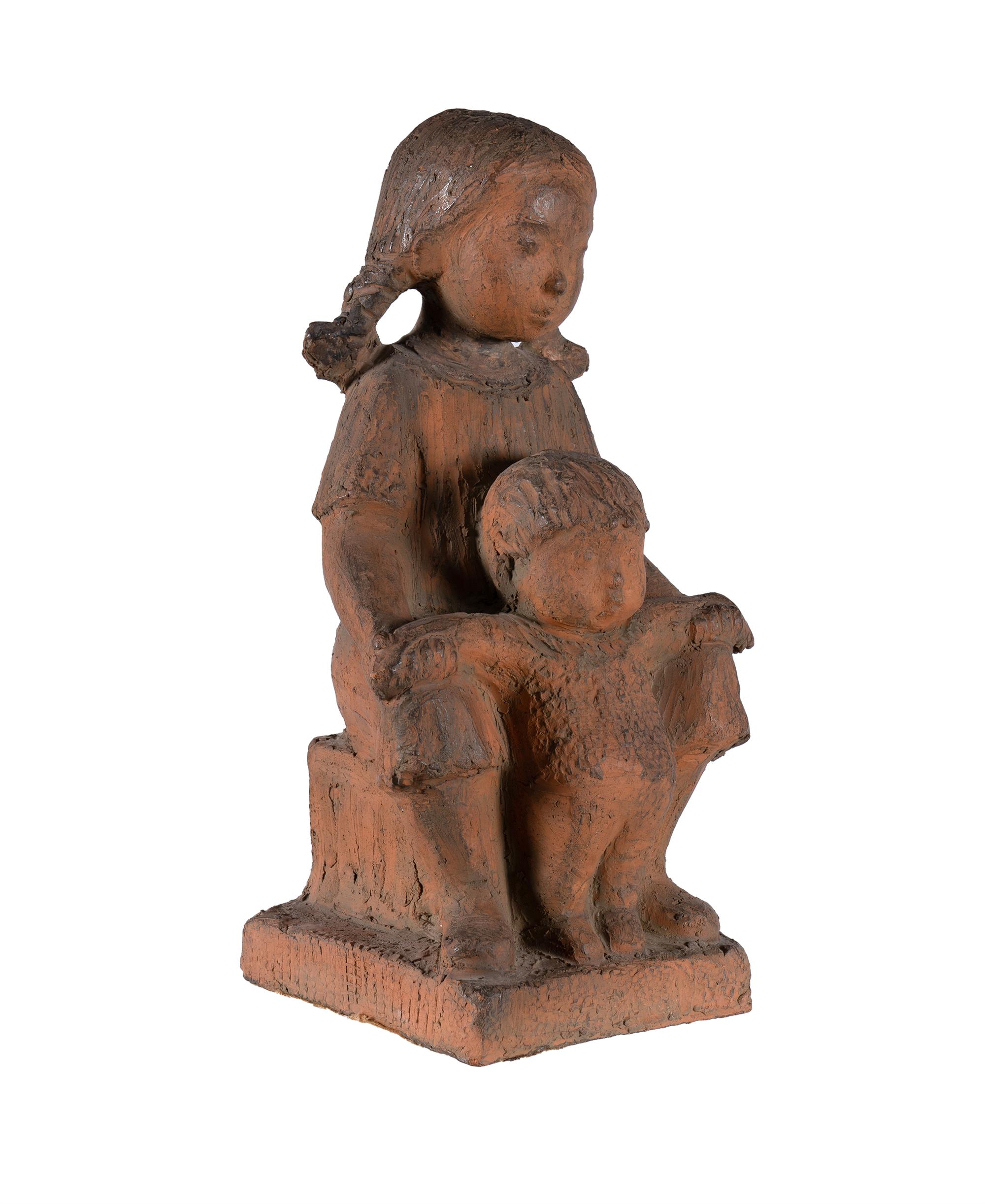 EBERLEIN, Ernst Gullov (Danish 1911-1993) Young Girl & Toddler Inscribed signature verso 'E. Eberlein, Denmark. Terracotta Sculpture H36cmEstimate $100-200