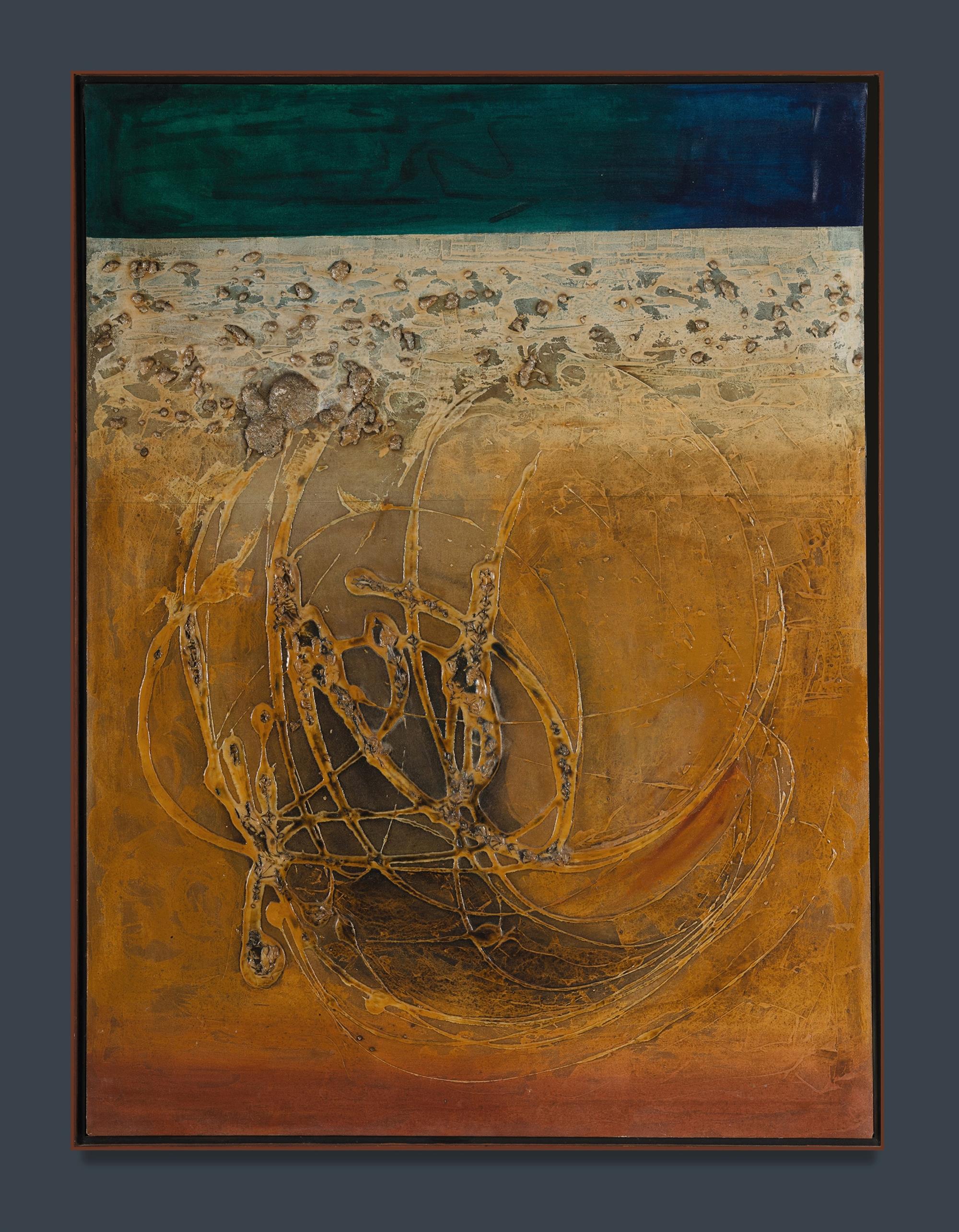 RINTOUL, Gordon (b.1931) 'Desert Growth,' 1967. Artist's label verso. Mixed Media on Canvas 123x91.5cm PROVENANCE: Estate Late James Gordon BrownlowEstimate $200-400