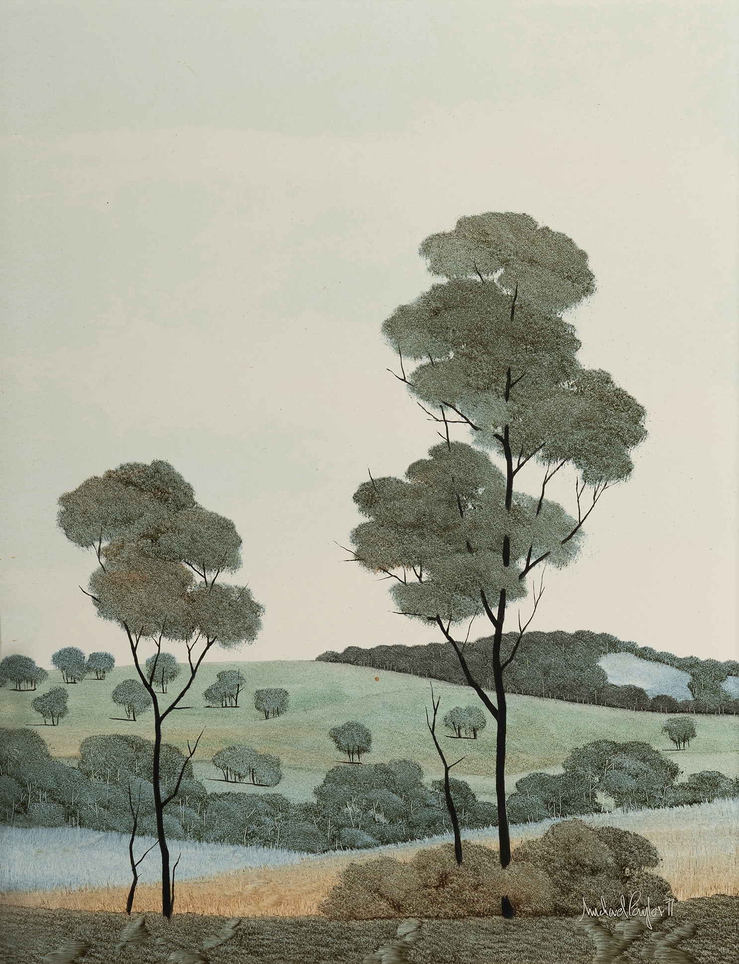 TAYLOR, Michael John (b.1939) (2) 'Hills Near Mudgee,' 1977 (24x19cm); & 'End of the South Field,' 1977. Oil on Board (2)Estimate $100-200