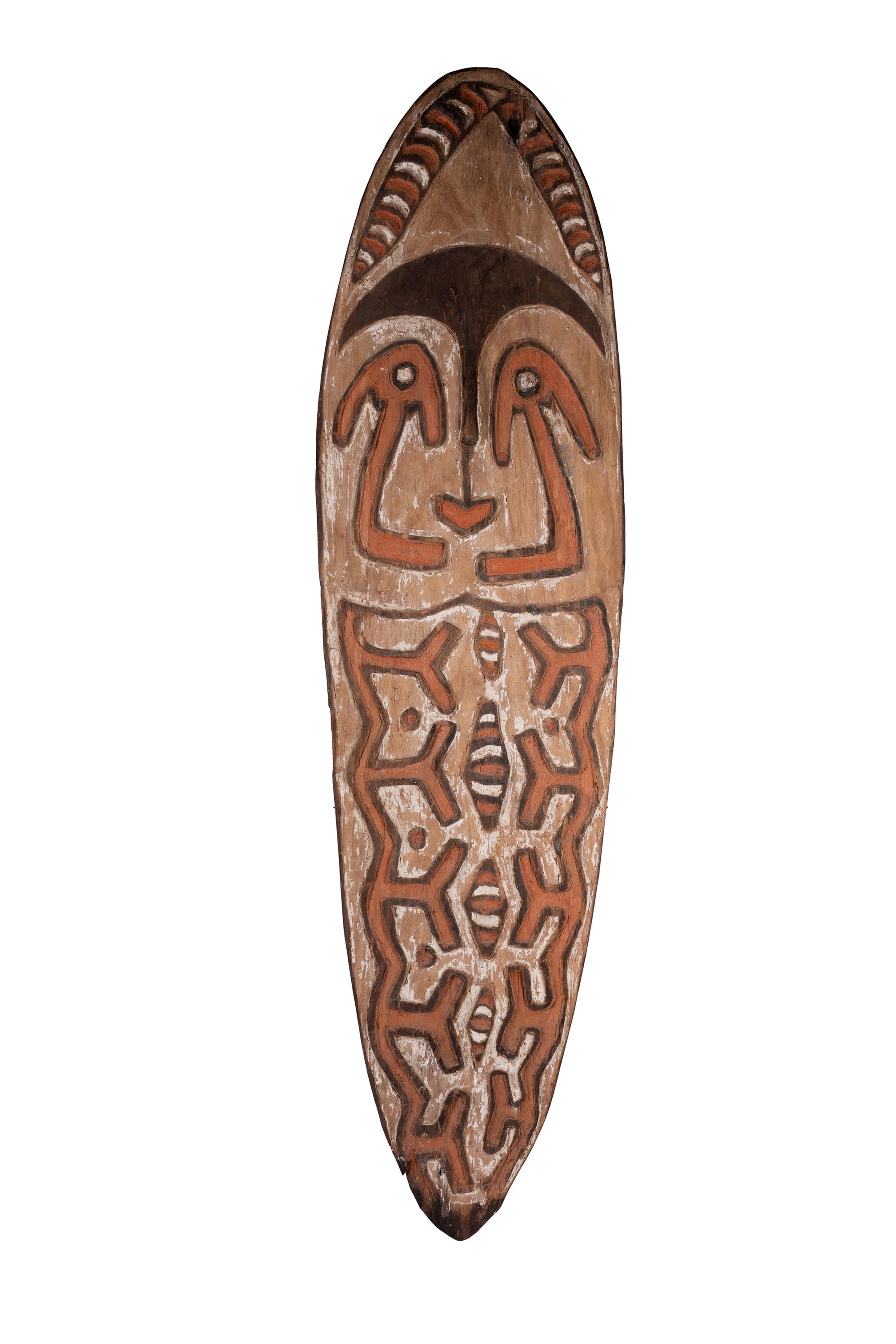 Two Gope Spirit Boards, Papua New Guinea Carved wooden boards with red & white ochre pigment. (H112cm & 94cm)Estimate $200-400