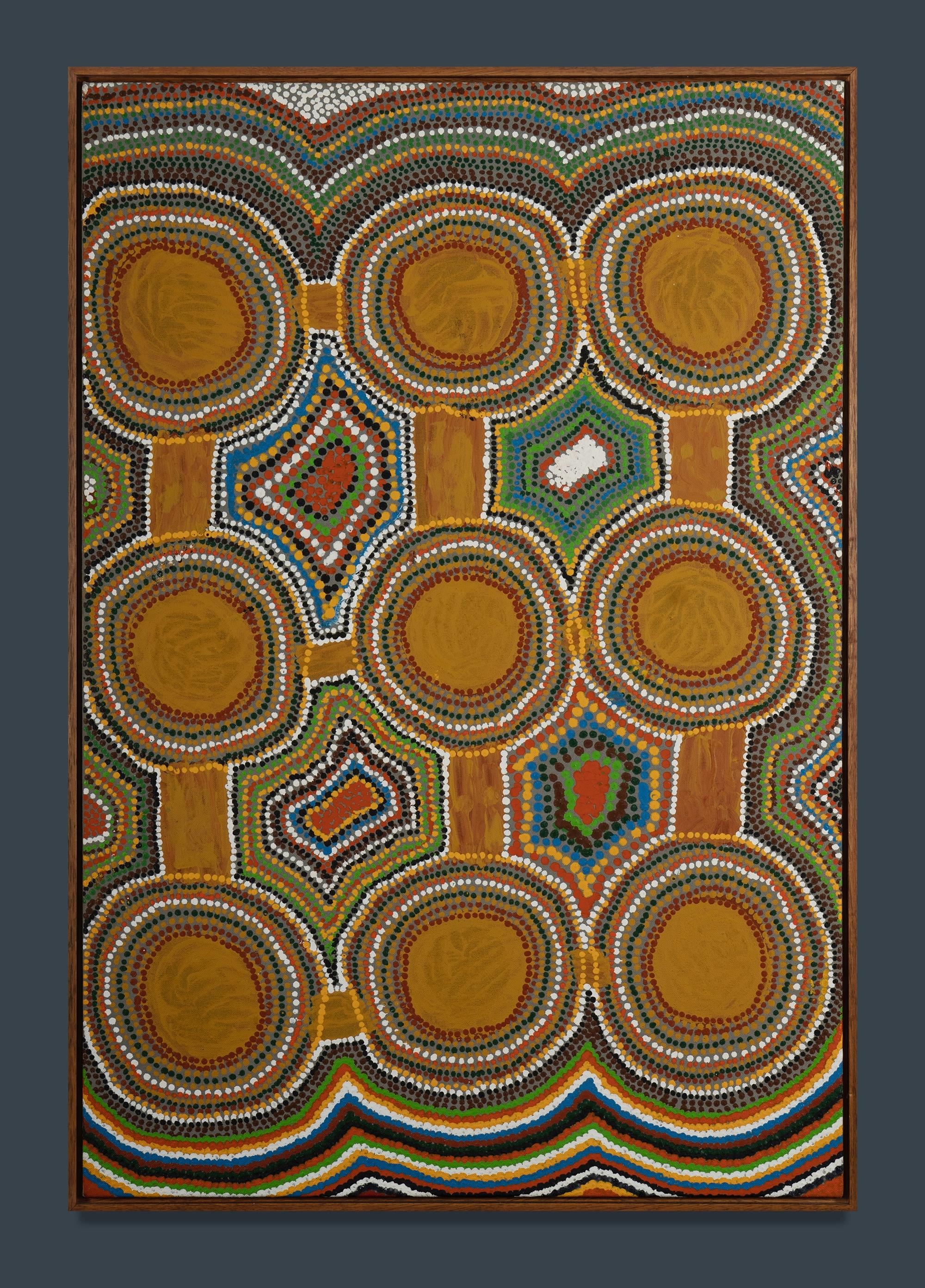 TJUPURRULA, Dominic Martin (Aboriginal born c1938) Untitled, 1994. Provenance: Warlayirti Artists (cat numbers 26/666 & 9/94); private collection, Sydney. Acrylic on Linen 88x60cmEstimate $600-1,000
